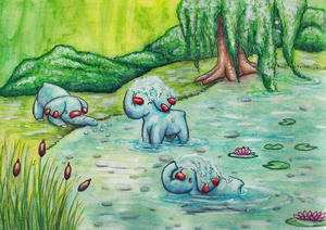 - AS Phanpy kann sich mit seiner Nase selbst duschen. Wenn andere dabei sind, begießen sie sich gegenseitig mit Wasser. Danach trocknet es seinen durchnässten Körper am Ufer.