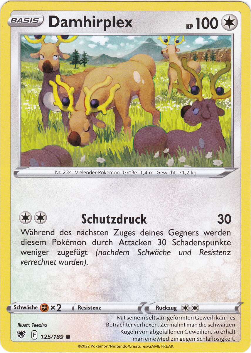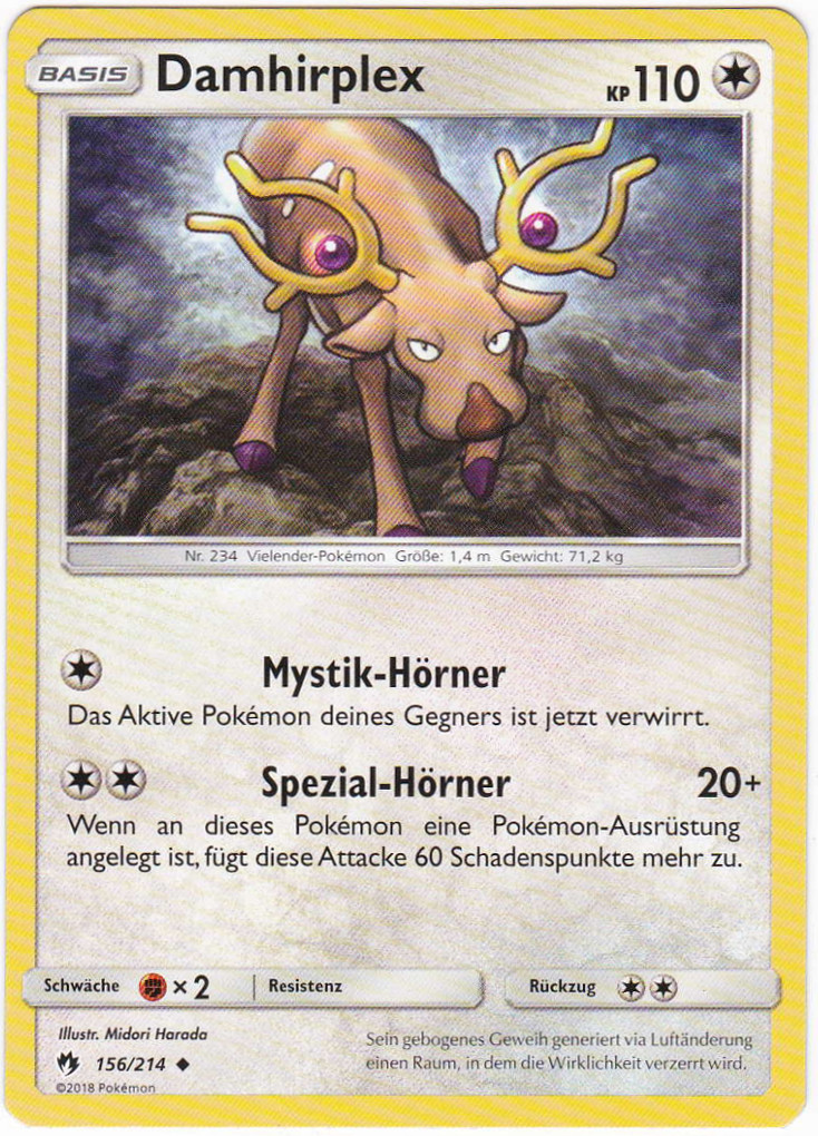 - OR Damhirplex hat ein prächtiges Geweih, für das hohe Preise gezahlt werden, da sie als Kunstwerke gelten. Daher wurde dieses Pokémon gejagt und wäre beinahe ausgestorben.