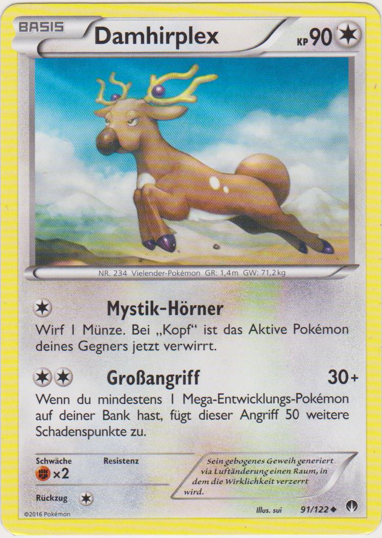 - AS Damhirplex hat ein prächtiges Geweih, für das hohe Preise gezahlt werden. Daher wurde dieses Pokémon gejagt und wäre beinahe ausgestorben.