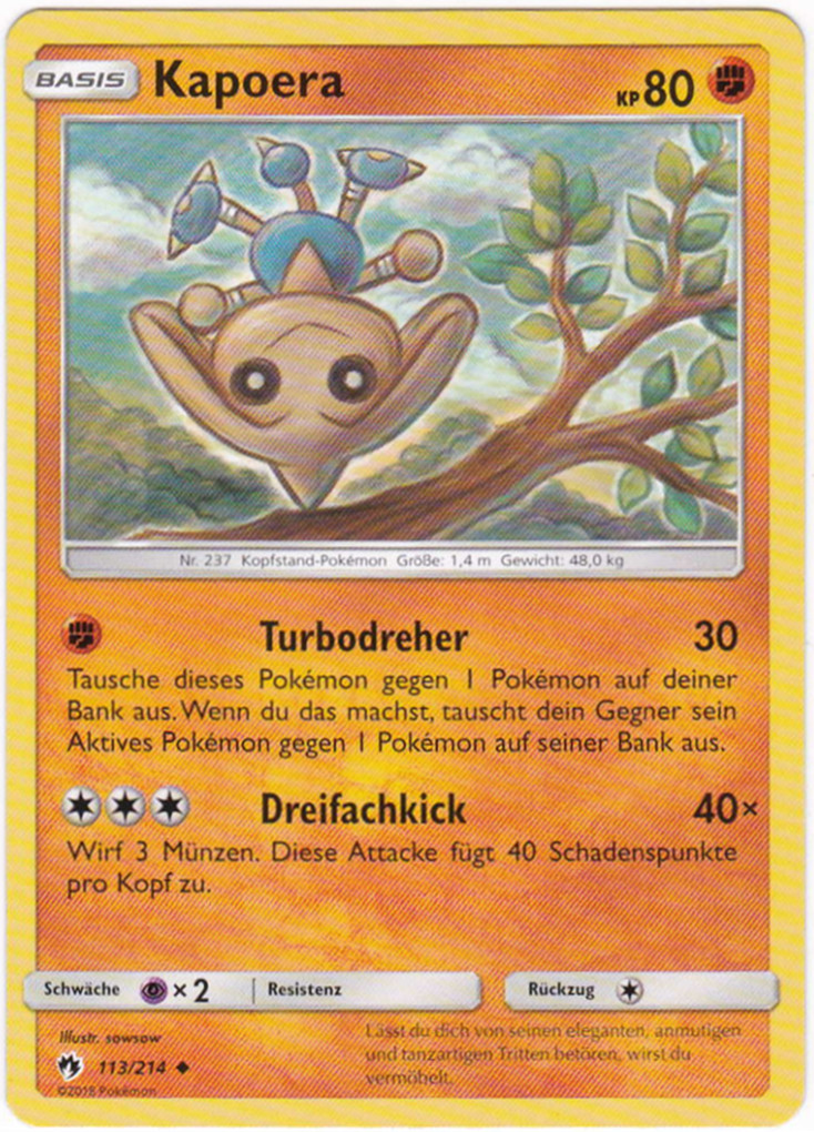 - SH Im Kampf bringt dieses Pokémon seine Gegner mit einem Handstand aus dem Takt und lehrt sie dann mit schwungvollen Tritten das Fürchten.