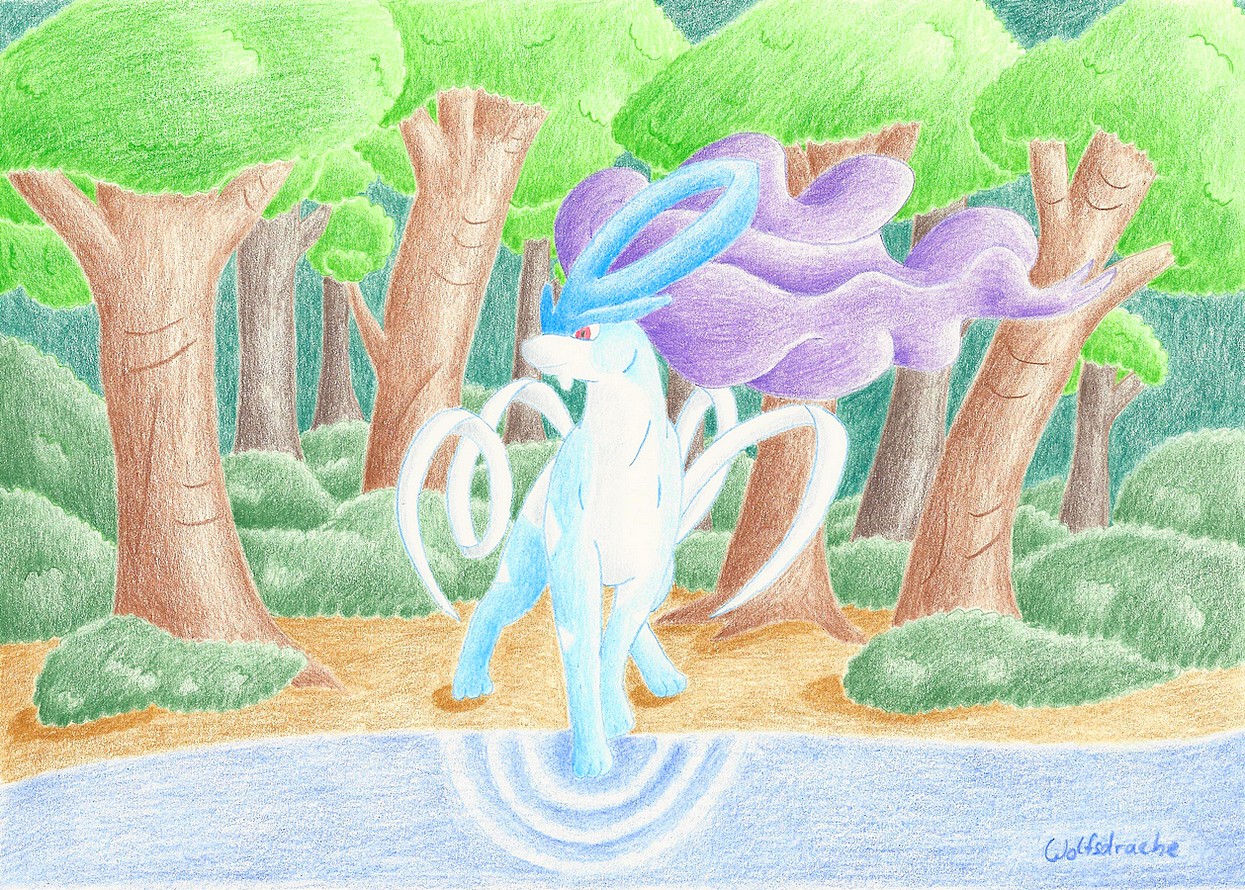 - OR Suicune wohnt die Reinheit einer Quelle inne. Es bewegt sich graziös und hat die Macht, schmutziges Wasser zu reinigen.