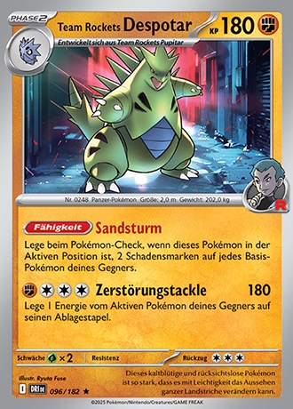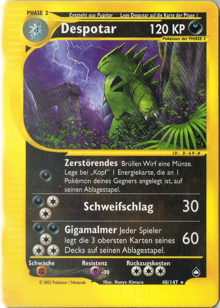 - K Dieses kaltblütige und rücksichtslose Pokémon ist so stark, dass es mit Leichtigkeit das Aussehen ganzer Landstriche verändern kann.