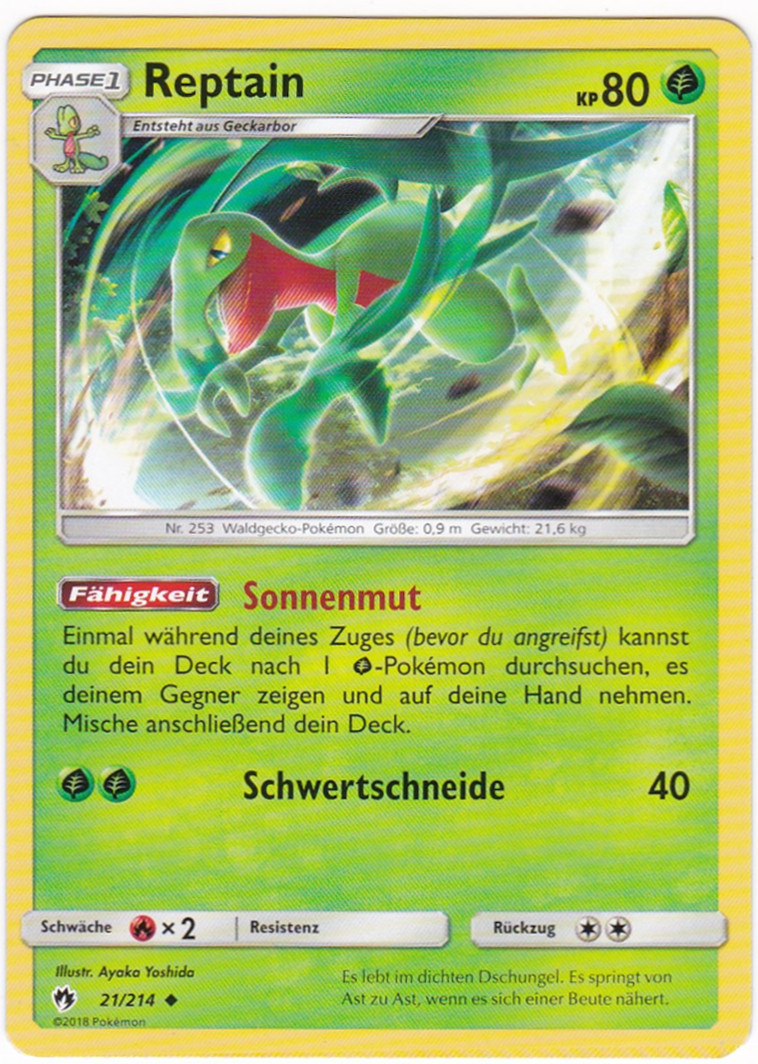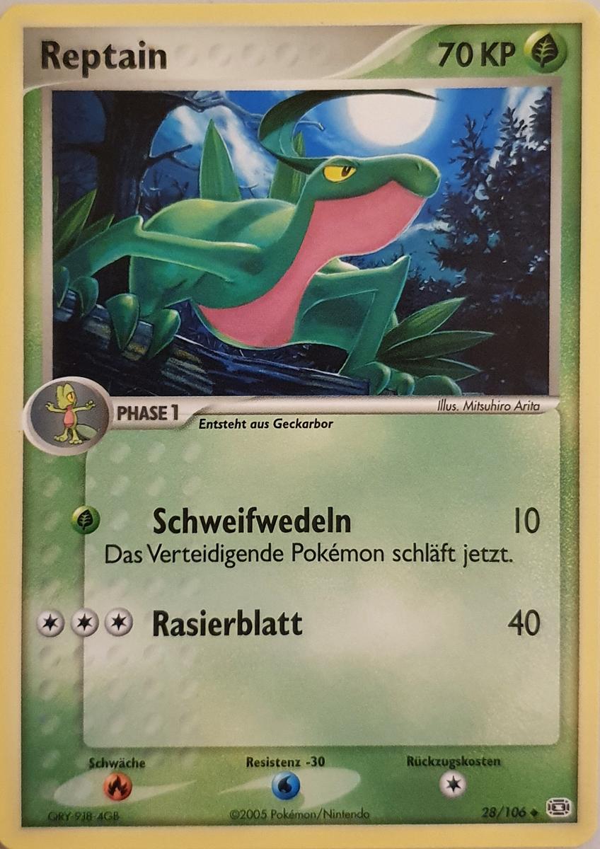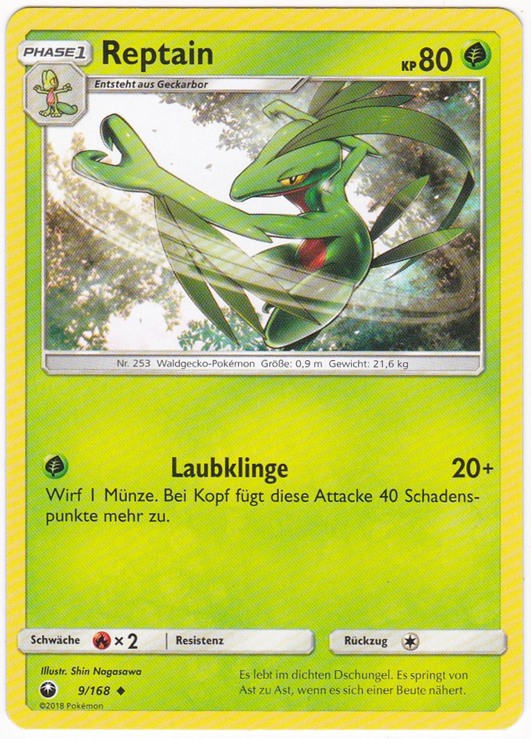 - AS Dieses Pokémon fliegt geschickt von Ast zu Ast. Keinem Pokémon wird es jemals gelingen, ein Reptain zu erwischen. Da kann es noch so schnell sein.