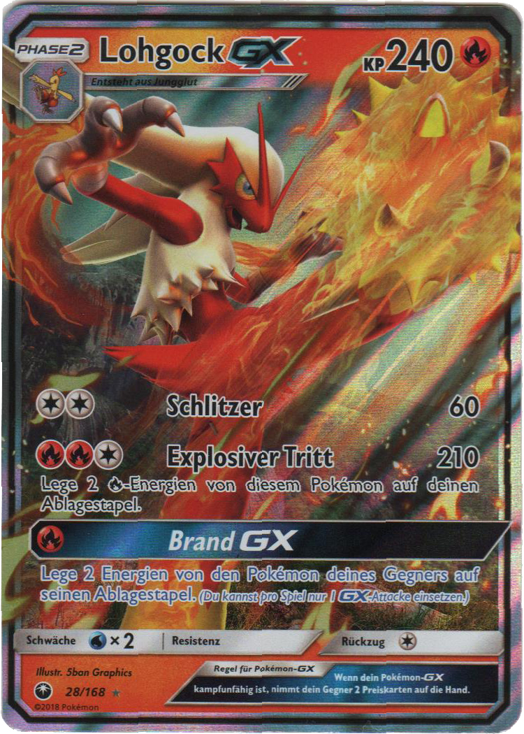 - S LOHGOCK besitzt unglaublich starke Beine, mit denen es ein 30 Stockwerke hohes Gebäude mit einem Sprung überwinden kann. Die flammenden Schläge dieses POKéMON lassen verkohlte Gegner zurück.