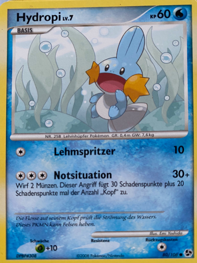 - SW Die Flosse auf seinem Kopf prüft die Strömung des Wassers. Dieses Pokémon kann Felsen heben.