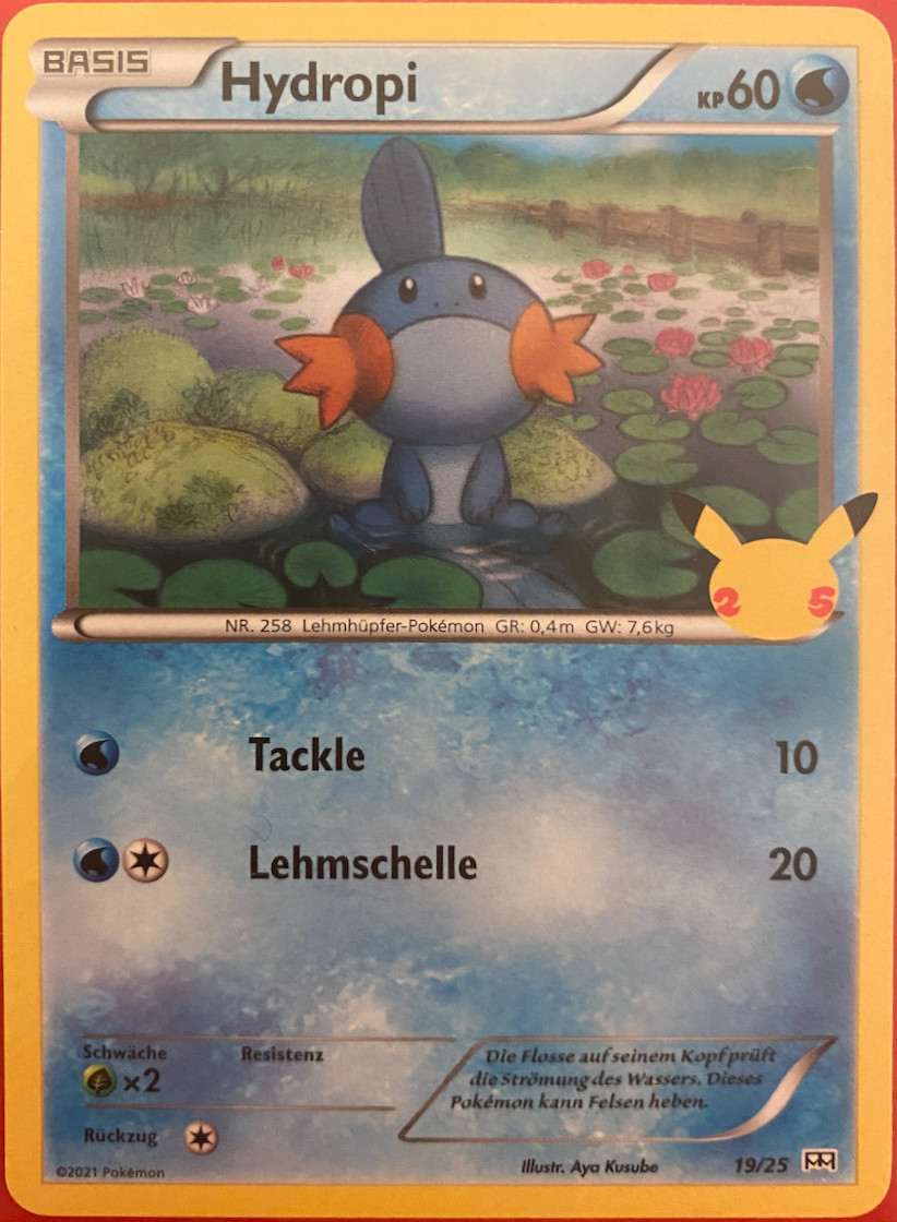 - Y Die Flosse auf seinem Kopf prüft die Strömung des Wassers. Dieses Pokémon kann Felsen heben.