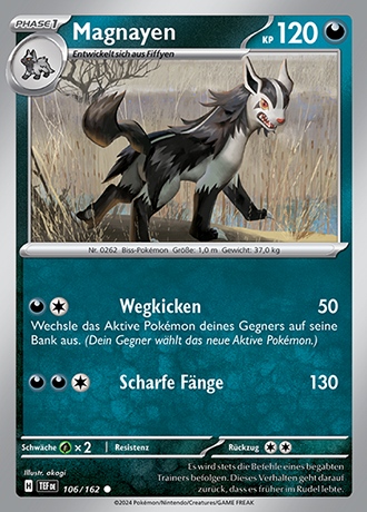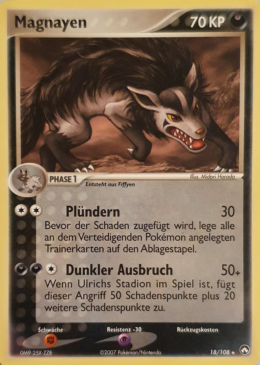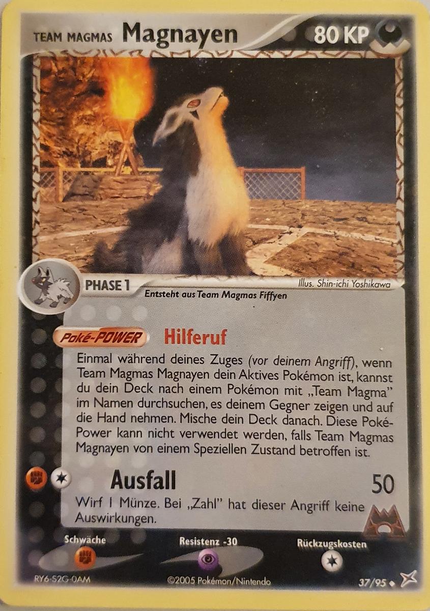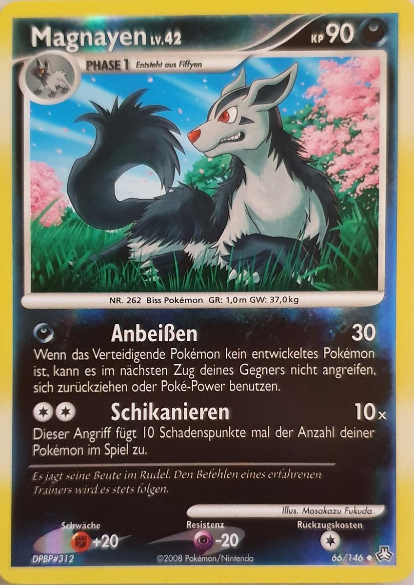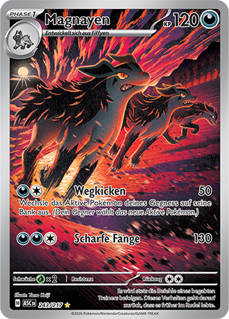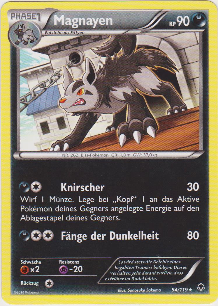 - R MAGNAYEN sendet deutliche Signale aus, wenn es sich auf einen Angriff vorbereitet. Es knurrt heftig und macht sich flach. Dieses POKéMON kann mit seinen spitzen Zähnen brutal zubeißen.