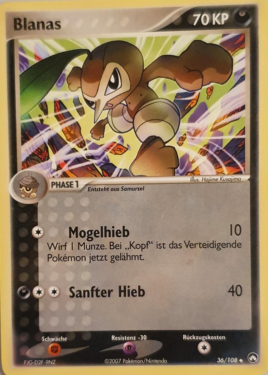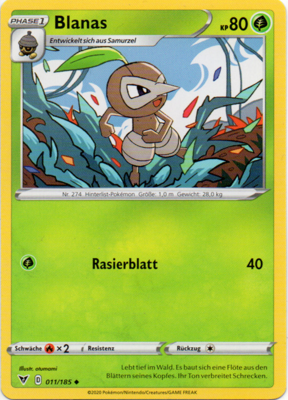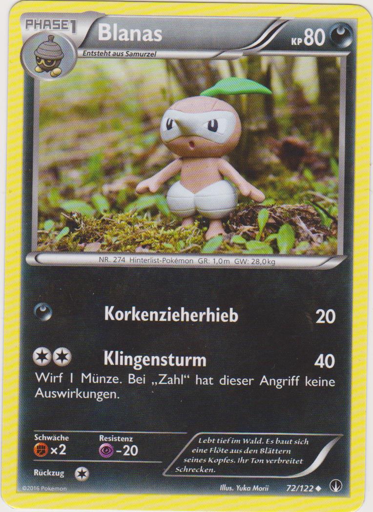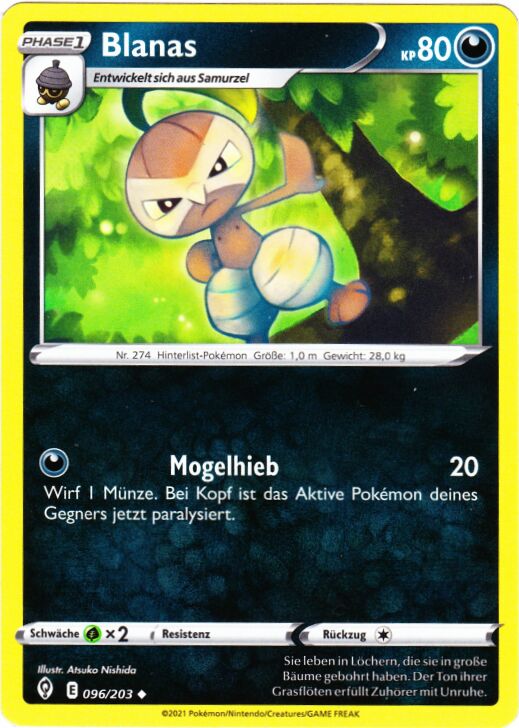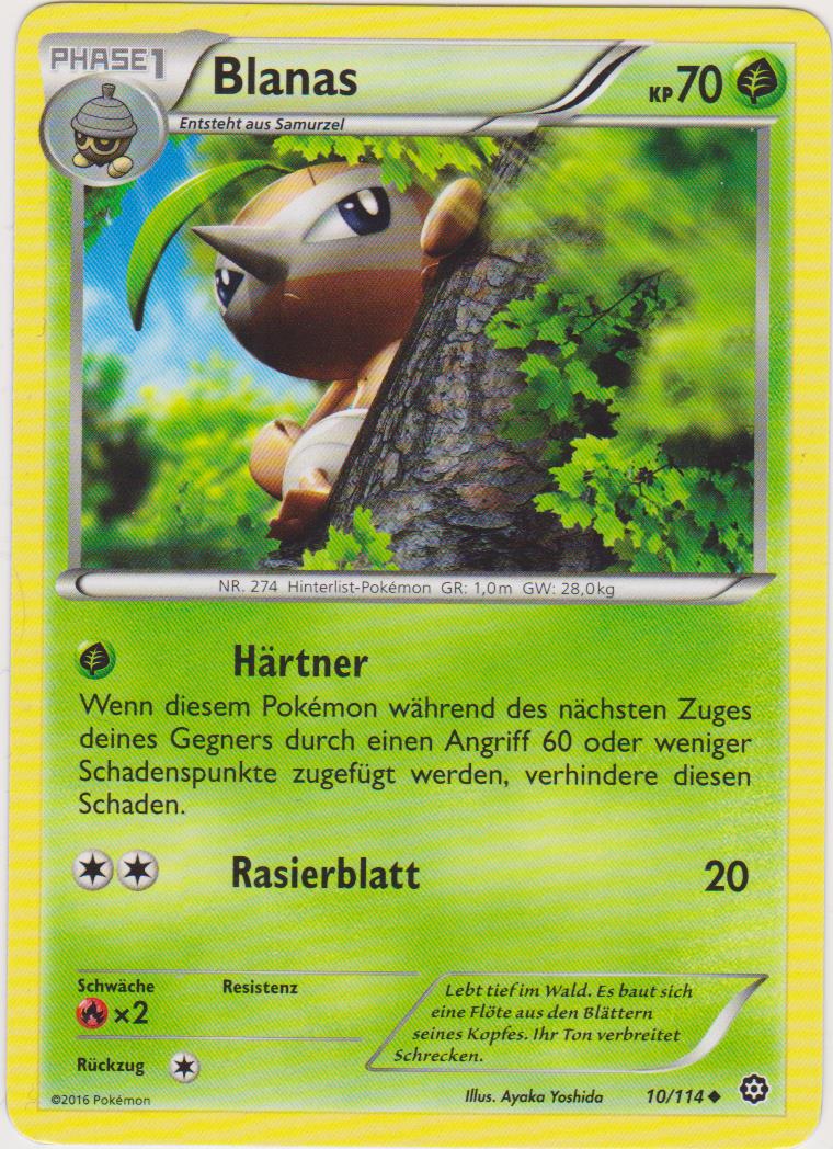 - OR Blanas lebt in dichten Wäldern. Manchmal wagt es sich aus dem Wald heraus, um Menschen zu erschrecken. Dieses Pokémon mag es überhaupt nicht, wenn man seine lange Nase zwickt.