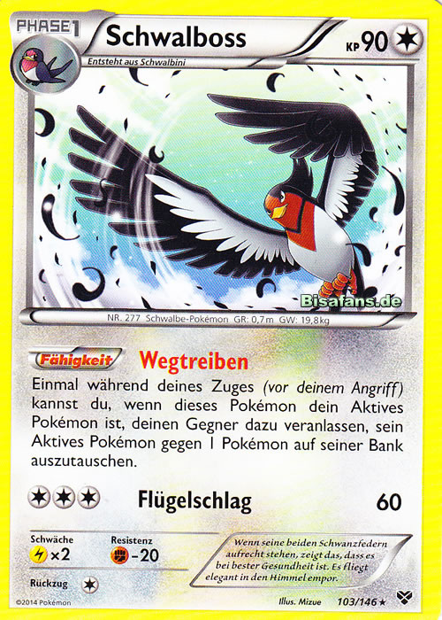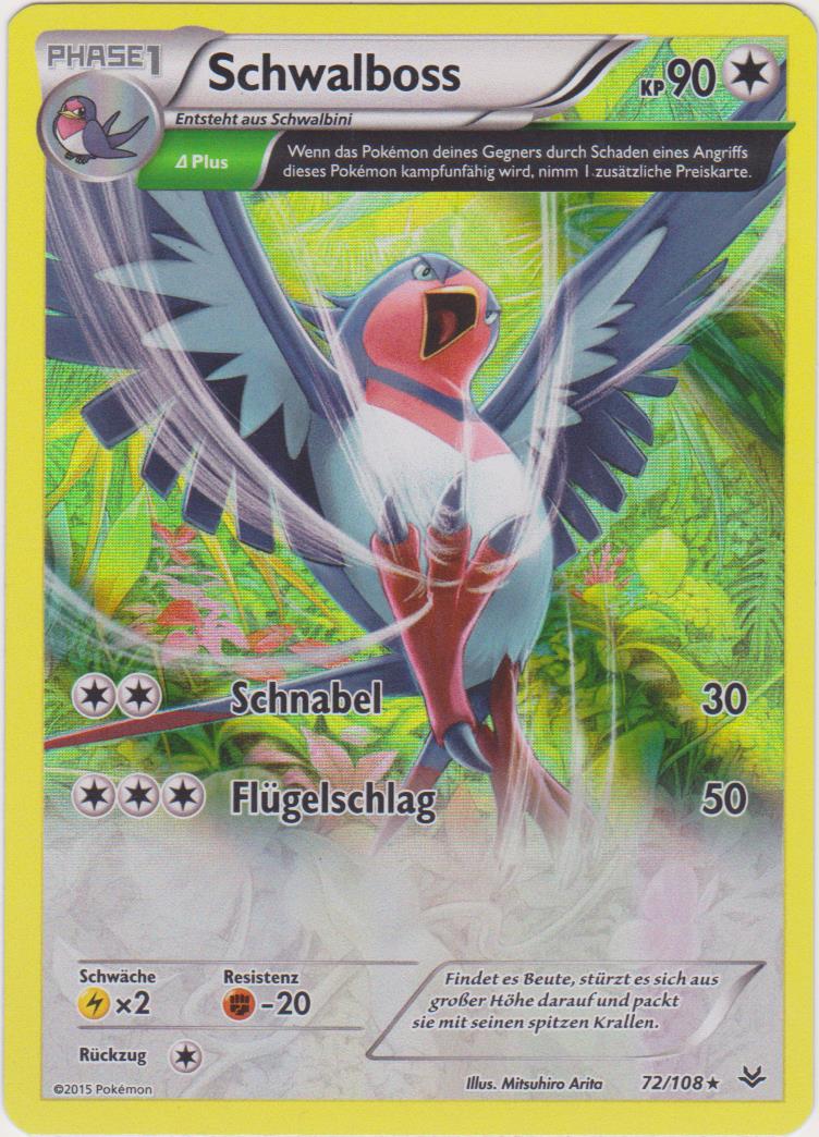 - GO Dieses Pokémon taucht in einem steilen Winkel ab, sobald es Beute wahrgenommen hat. Es packt seine Beute mit seinen Krallen und lässt sie nicht mehr entkommen.