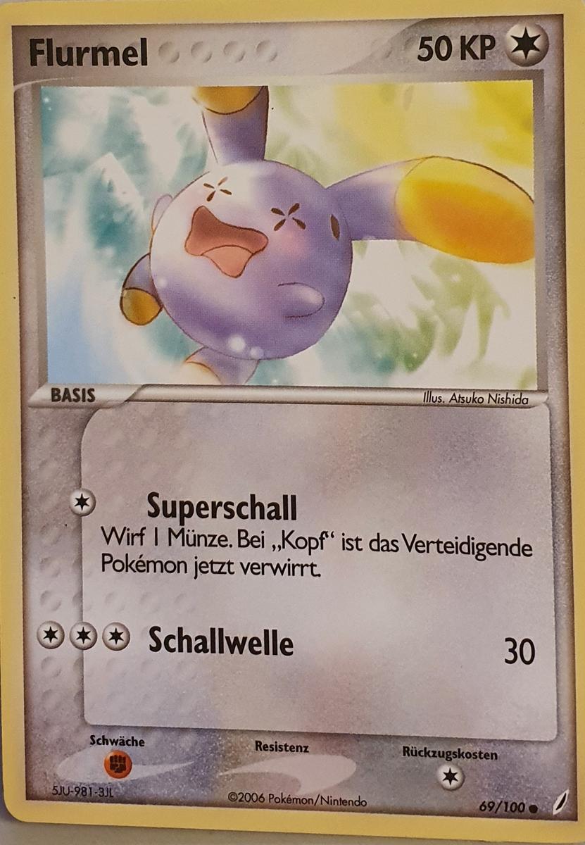 - R Normalerweise ist FLURMELs Stimme sehr leise, selbst mit größter Anstrengung ist sie kaum hörbar. Wenn dieses POKéMON jedoch eine Gefahr wittert, stößt es ohrenbetäubende Schreie aus.