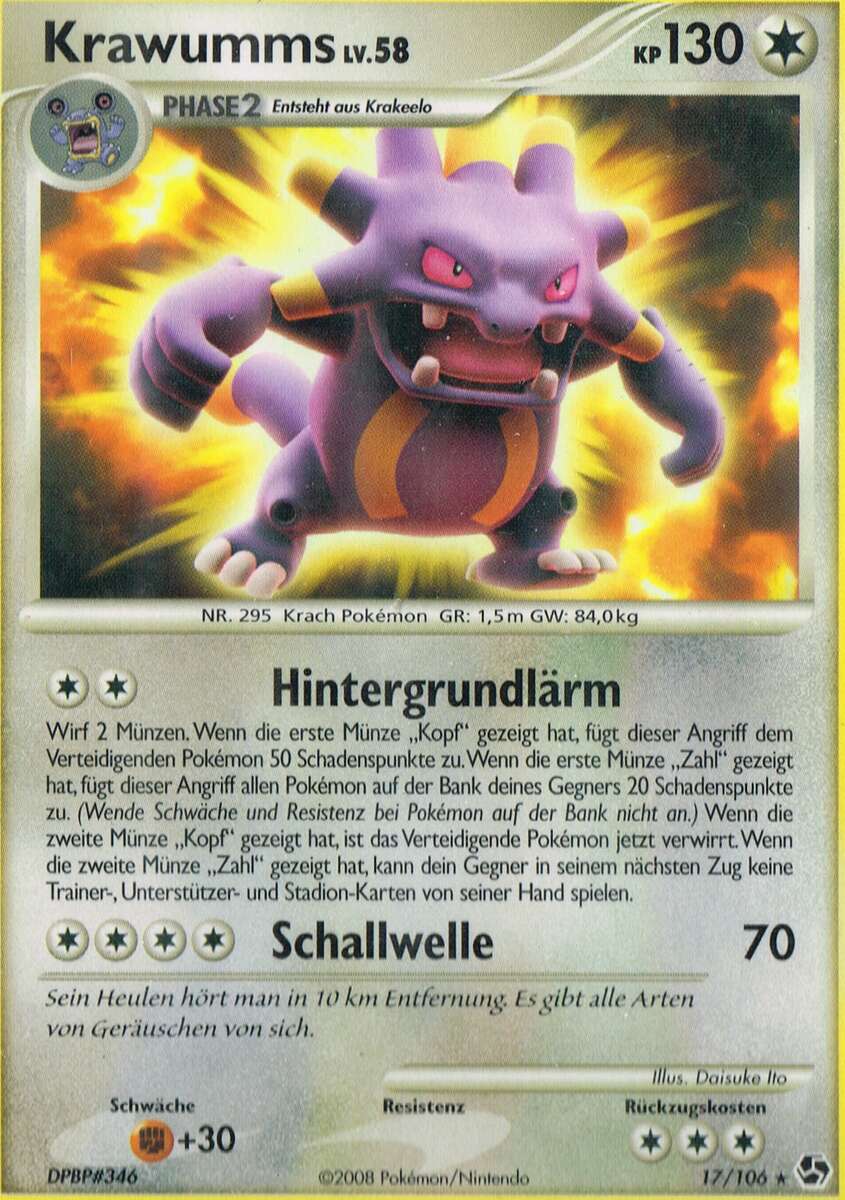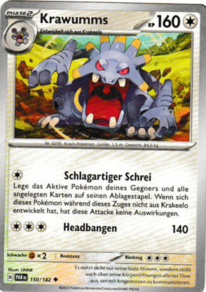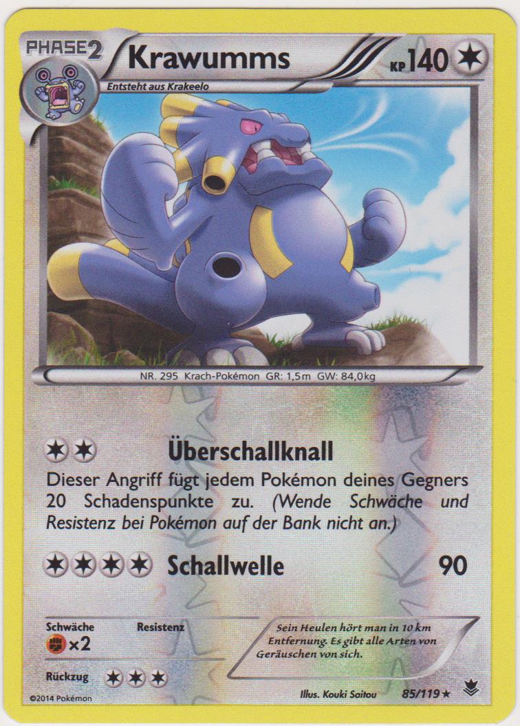 - OR Krawumms kann durch sein Brüllen Erdbeben auslösen. Wenn dieses Pokémon durch seine Körperöffnungen kräftig einatmet, ist es kurz davor, ein mächtiges Brüllen von sich zu geben.