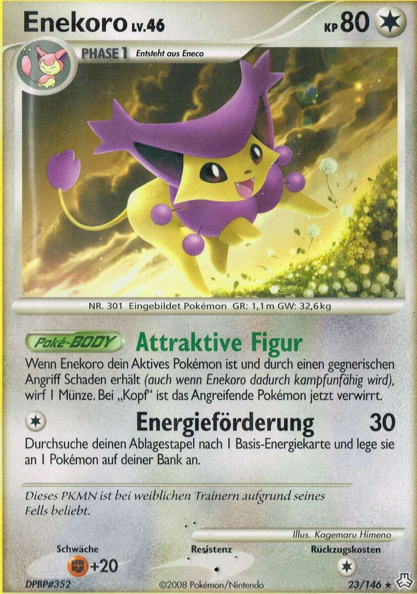 - AS Enekoro schläft dort, wo es ihm gefällt und hat kein dauerhaftes Nest. Nähern sich ihm andere Pokémon, wenn es schläft, kämpft es nicht mit ihnen, sondern zieht weiter.
