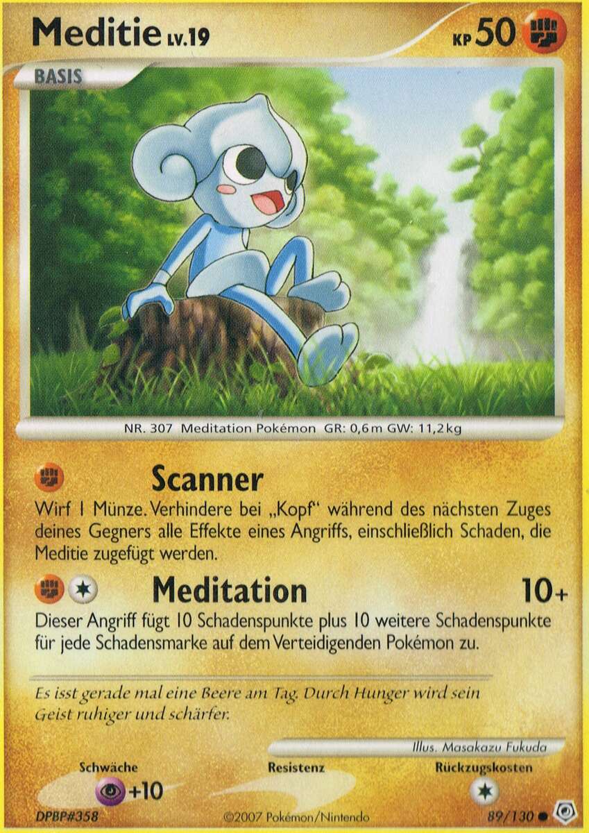- LP Dieses Pokémon vergisst niemals seine täglichen Yogaübungen und erhöht seine mentale Stärke durch Meditation.