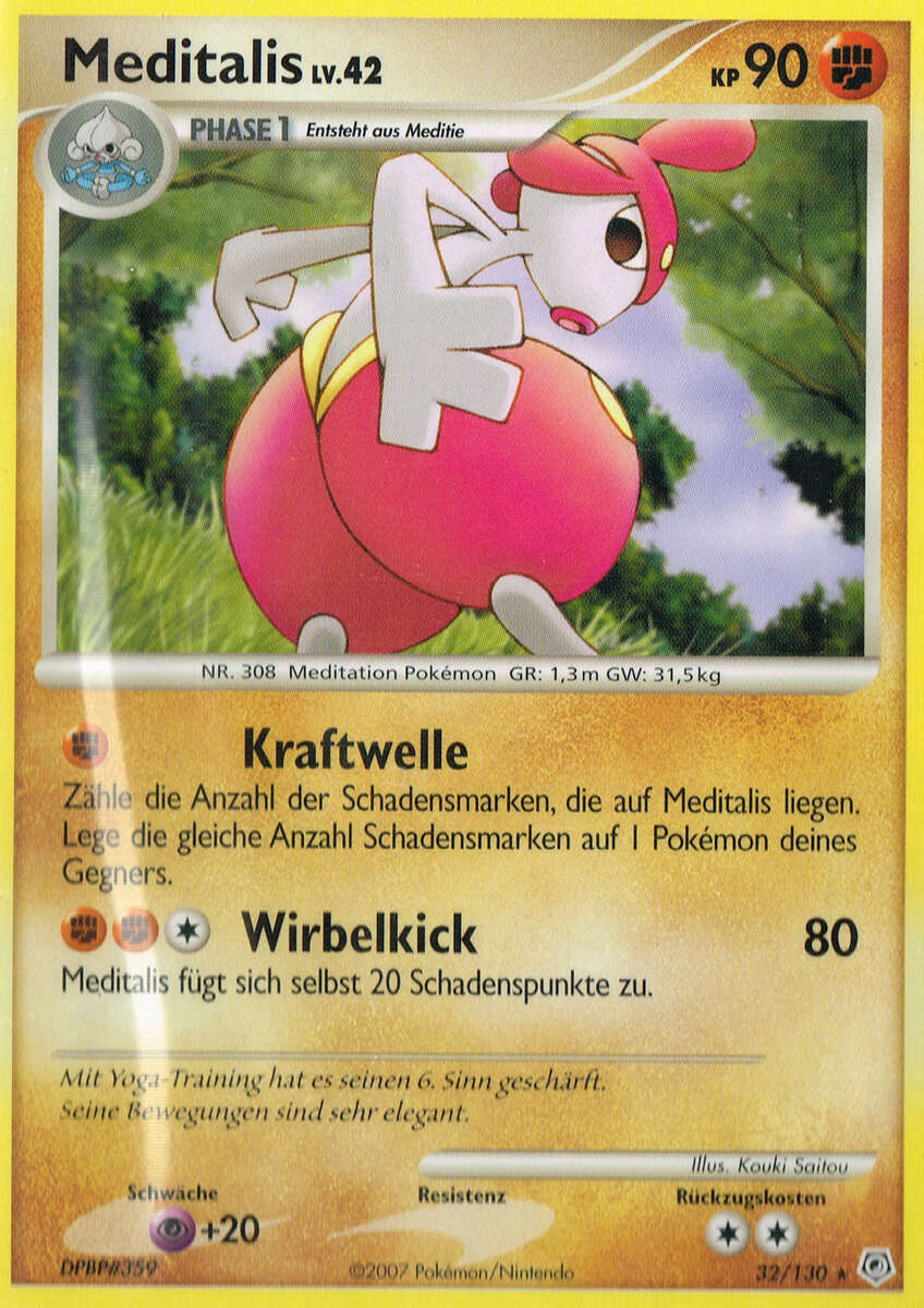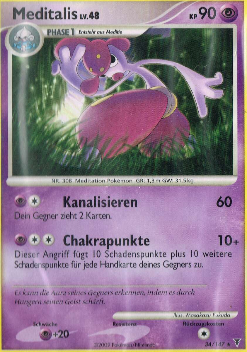 - AS Mittels Meditation hat Meditalis seinen sechsten Sinn entwickelt. So kann es seine psychokinetischen Kräfte nutzen. Dieses Pokémon meditiert einen ganzen Monat, ohne etwas zu essen.