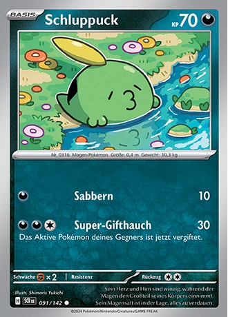 - S SCHLUPPUCKs Körper besteht zum größten Teil aus seinem Magen. Sein Herz und sein Gehirn sind im Vergleich dazu sehr klein. Der Magen dieses POKéMON enthält Enzyme, die alles zersetzen können.
