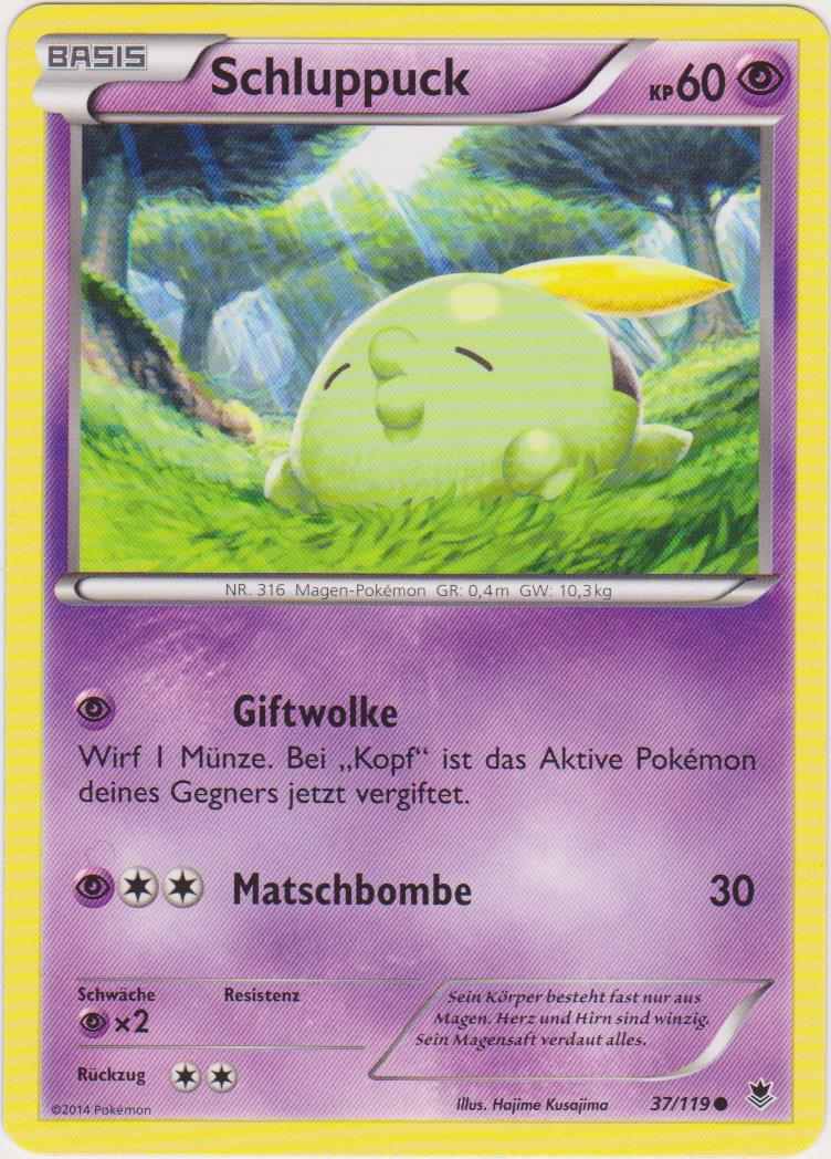 - AS Schluppucks Körper besteht zum größten Teil aus seinem Magen. Sein Herz und sein Gehirn sind im Vergleich dazu sehr klein. Der Magen dieses Pokémon enthält Enzyme, die alles zersetzen können.