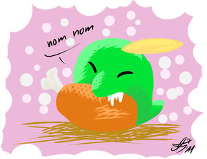 - R Eigentlich besteht SCHLUPPUCKs Körper nur aus einem Magen. Daher kann es etwas verschlingen, das beinahe seine Größe hat. Sein Magen enthält eine spezielle Flüssigkeit, die wirklich alles verdauen kann.