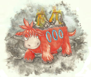 - FRBG Wenn es wütend ist, regnet es aus den Höckern auf seinem Rücken flüssige Lava. Es lebt in den Kratern von Vulkanen.