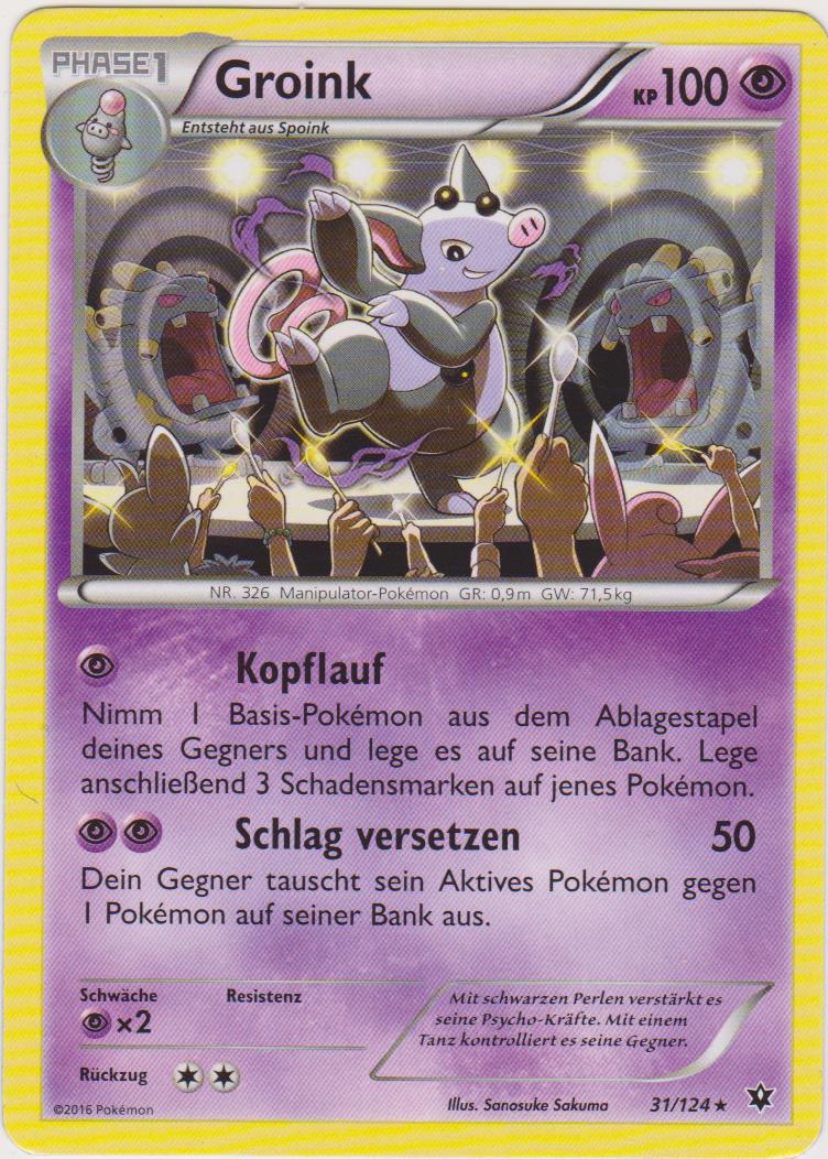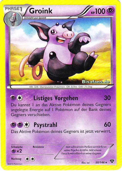 - XY Mit schwarzen Perlen verstärkt es seine Psycho-Kräfte. Mit einem Tanz kontrolliert es seine Gegner.