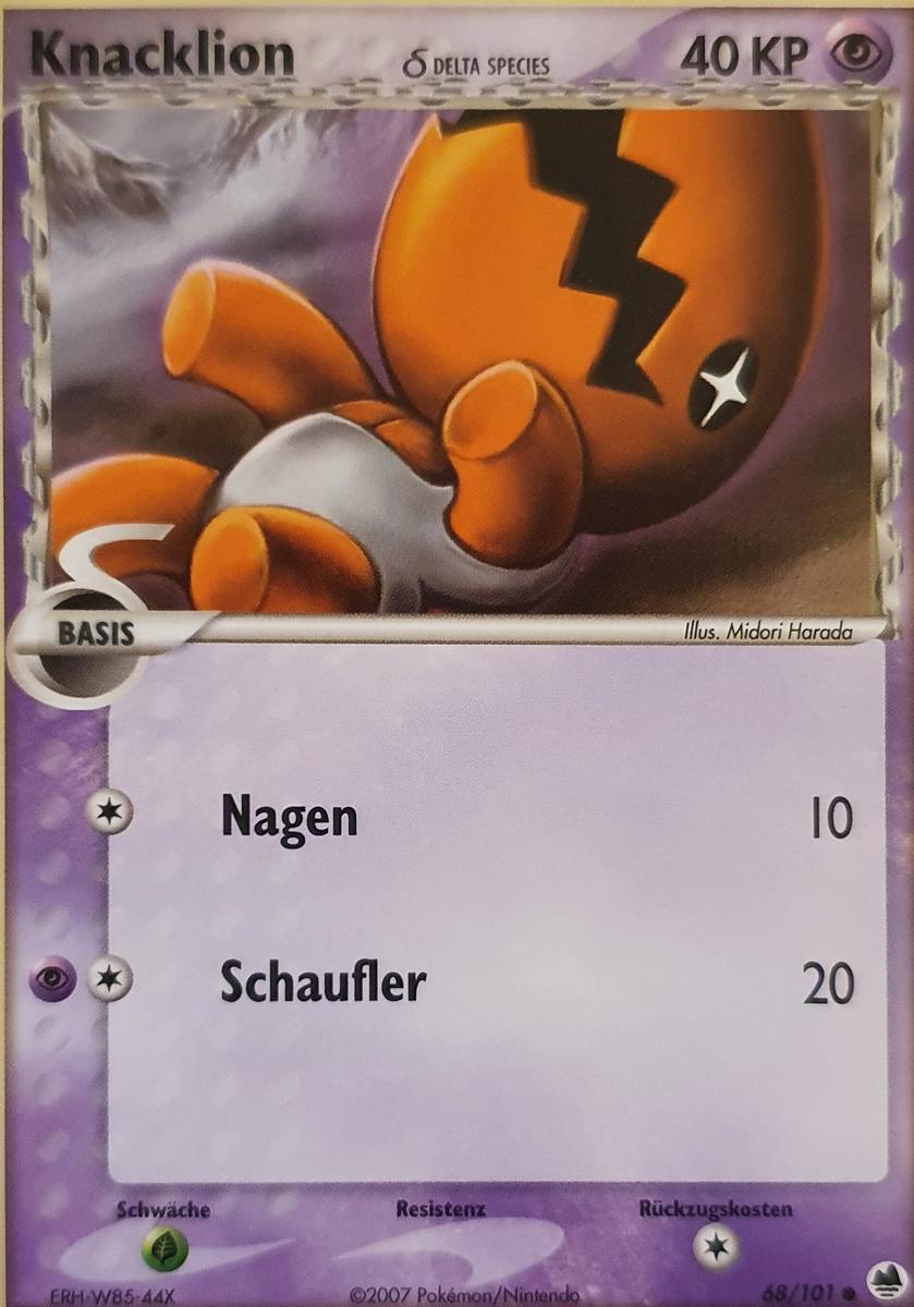 - AS Knacklion ist ein geduldiger Jäger. Es gräbt in einer Wüste eine tiefe Grube und wartet auf Beute, die hineinfällt. Dieses Pokémon kommt eine ganze Woche ohne Wasser aus.