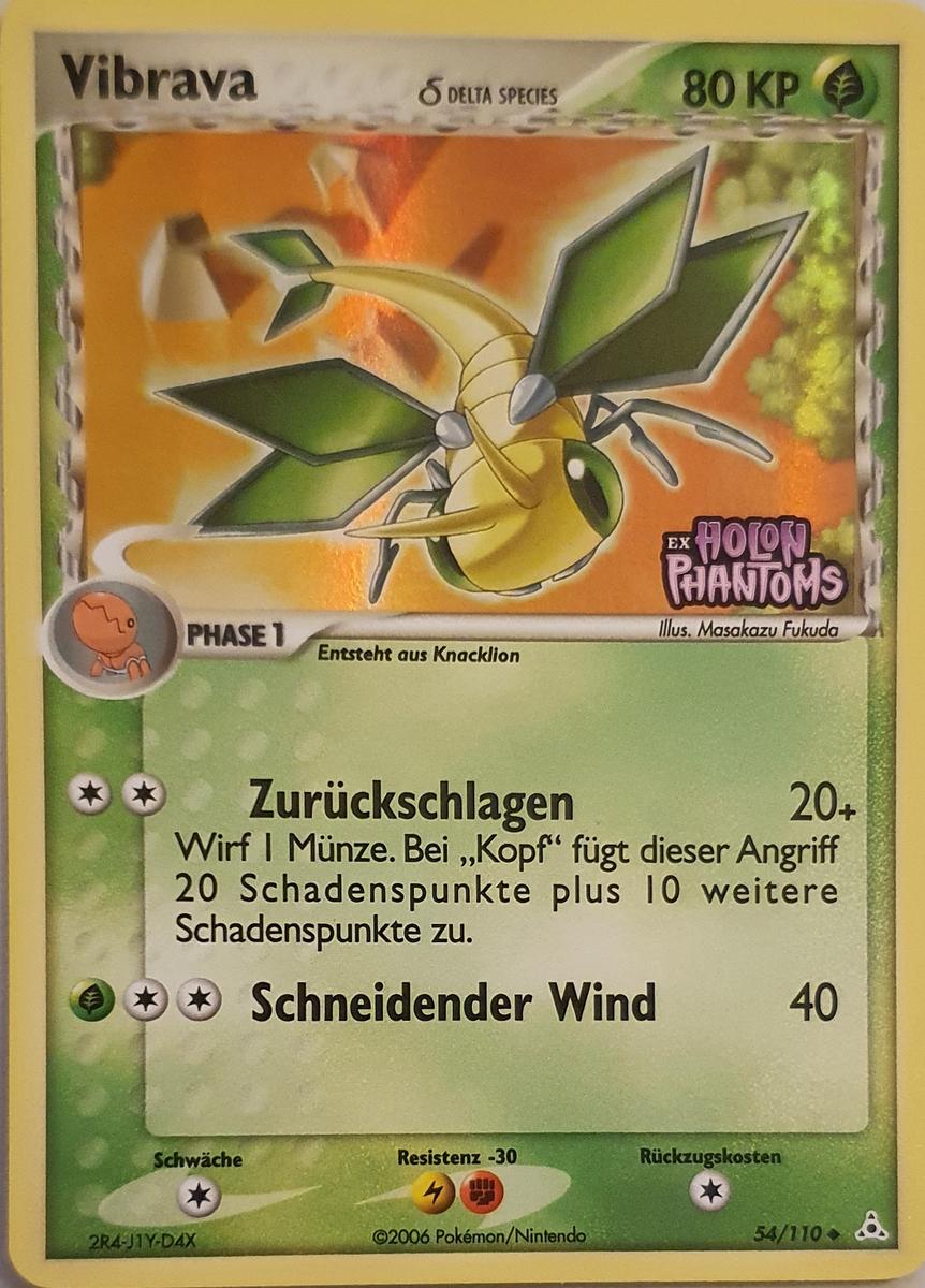 - OR Um seine Beute zu schwächen, erzeugt Vibrava Ultraschallwellen, indem es seine Flügel vibrieren lässt. Die Ultraschallwellen dieses Pokémon sind so stark, dass sie bei Menschen Kopfschmerzen verursachen können.