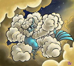 „Du wirst doch ganz nass!“, rief das Mädchen und lachte dabei laut. Es würde nie den Anblick vergessen, als sich die watteweichen Wolken Mega-Altarias zum ersten Mal eng an seinen Körper gelegt hatten. Seither ließ es auch nicht davon ab, sich regelmäßig beim Sprinkler mit Wasser begießen zu lassen und dabei freudig zu singen.