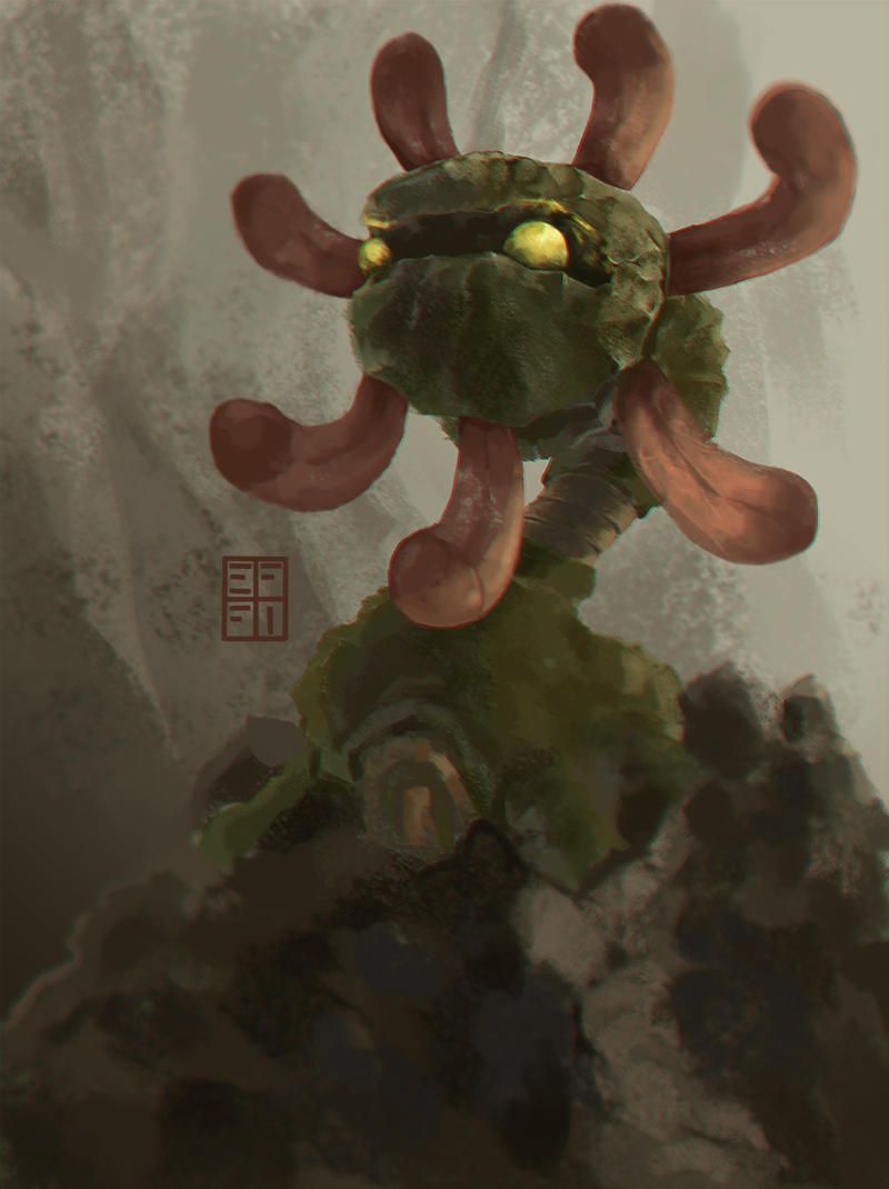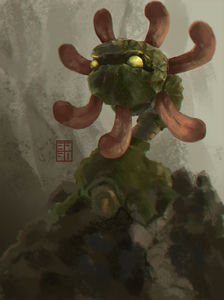 - UM Ein fleischfressendes Pokémon aus dem Urmeer. Mit seinen acht Tentakeln fing es Beute und löste sie in Verdauungssaft auf, bevor es sie aß.