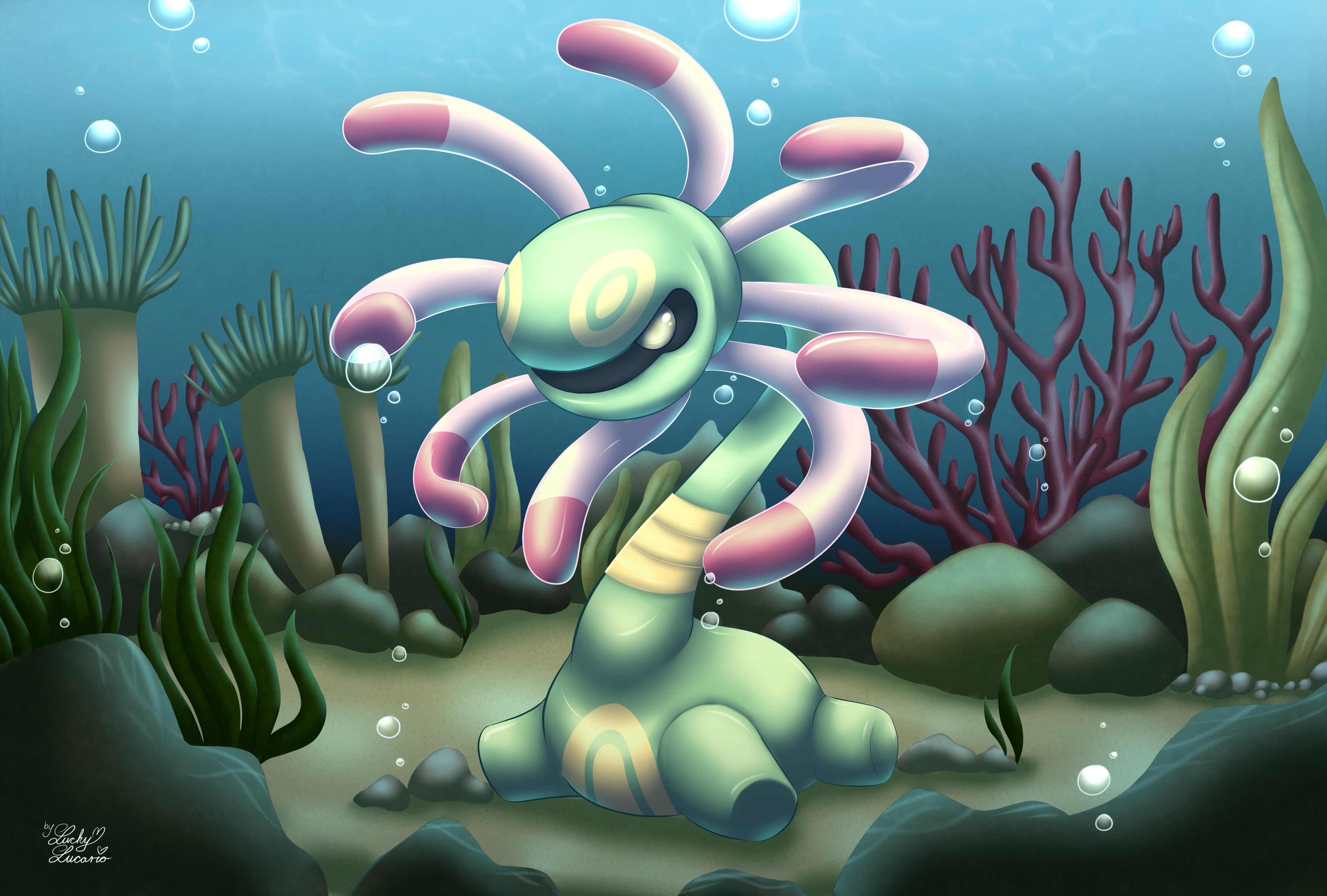 - HGSS Es lebt in warmen Meerwasser. Sein Körper dient ihm als Anker und schützt es davor, abzutreiben.