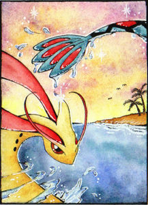 - NPS Dieses Lumina-Pokémon ist sehr anmutig durch das klare Wasser geschwommen. Ich gehe davon aus, dass sein Erwachen mit Meganie zusammenhängt.