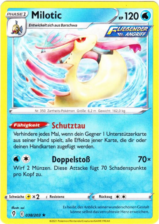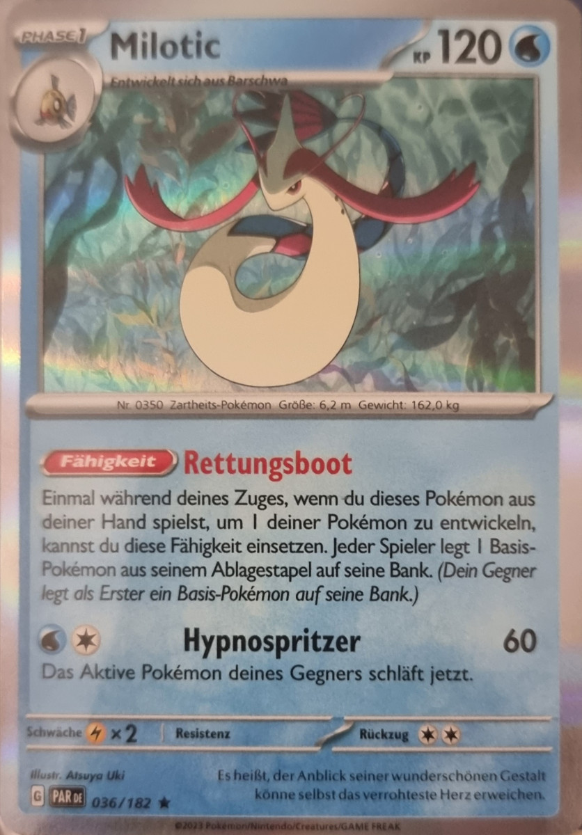 - OR Milotic soll das schönste aller Pokémon sein. Es hat die Macht, Emotionen wie Wut und Feindseligkeit zu besänftigen und somit erbitterten Streit zu vermeiden.