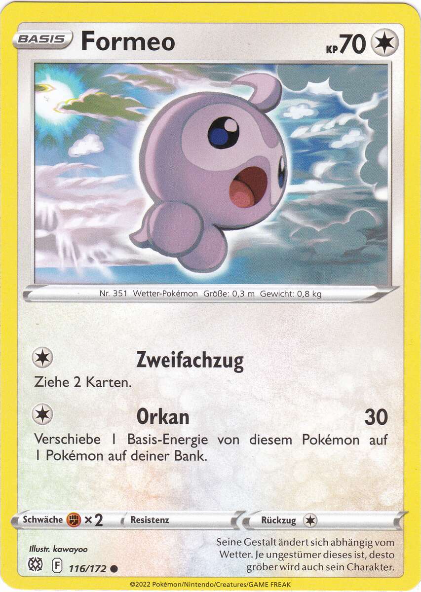 - AS Formeo bedient sich der Kraft der Natur, um die Gestalt der Sonne, des Regens oder von Schneewolken anzunehmen. Die Gefühlslage dieses Pokémon verändert sich mit dem Wetter.