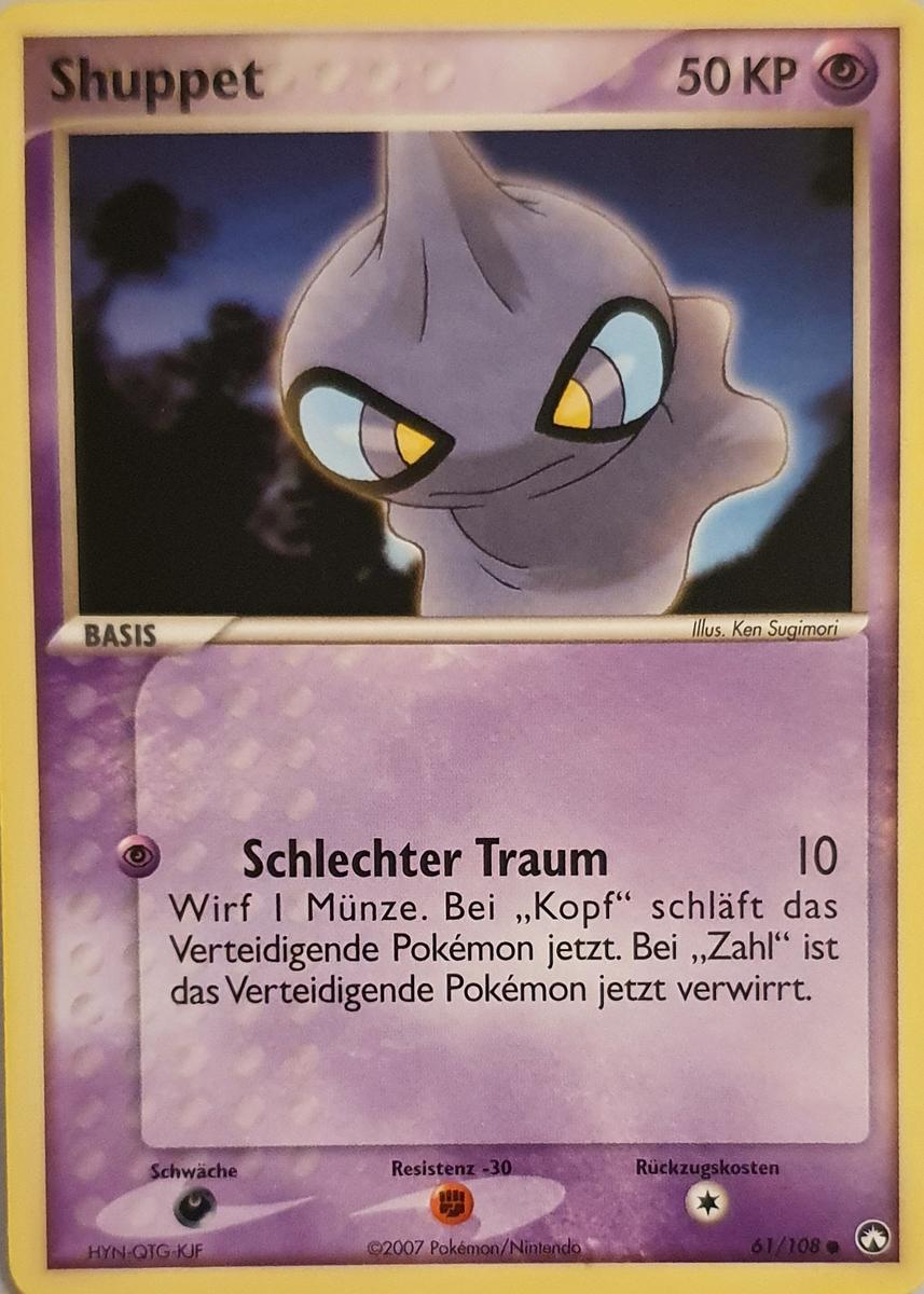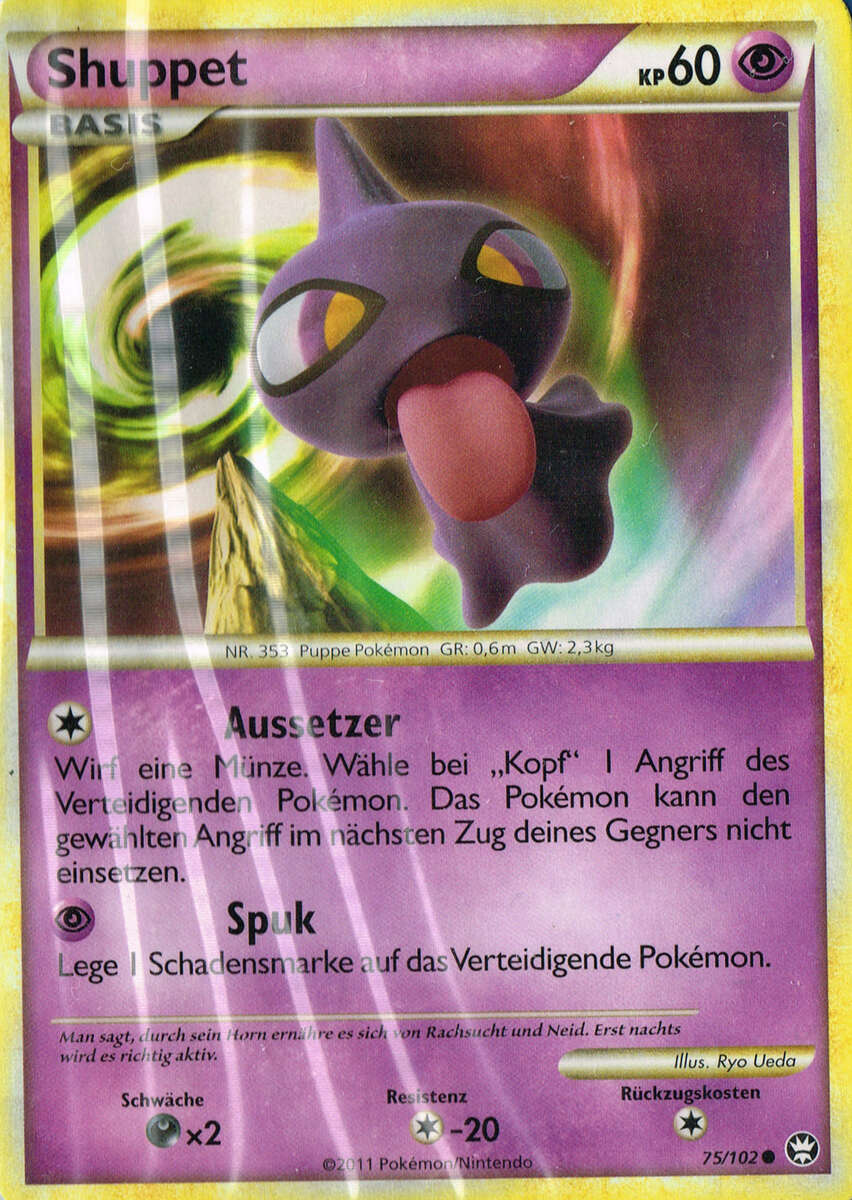 - OR Shuppet wird durch Gefühle wie Neid und Rachsucht angezogen. Wenn jemand starke Rachegelüste entwickelt, erscheinen diese Pokémon in Scharen und reihen sich unter der Dachrinne des Hauses dieser Person auf.