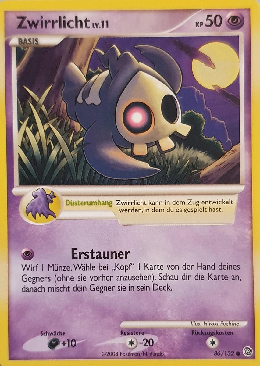 - AS Zwirrlicht wandert verloren durch die tiefe Dunkelheit der Nacht. Kinder werden oft ermahnt, dass dieses Pokémon böse Kinder wegzaubert, die von ihren Müttern ausgeschimpft worden sind.