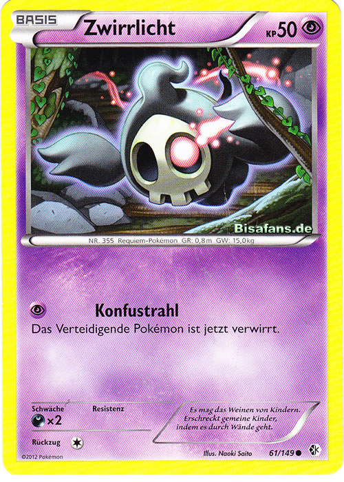 - OR Zwirrlicht kann durch jede Wand gehen, egal, wie dick diese ist. Wenn dieses Pokémon sich ein Ziel gesucht hat, verfolgt es seinen Feind unnachgiebig bis zum Sonnenaufgang.