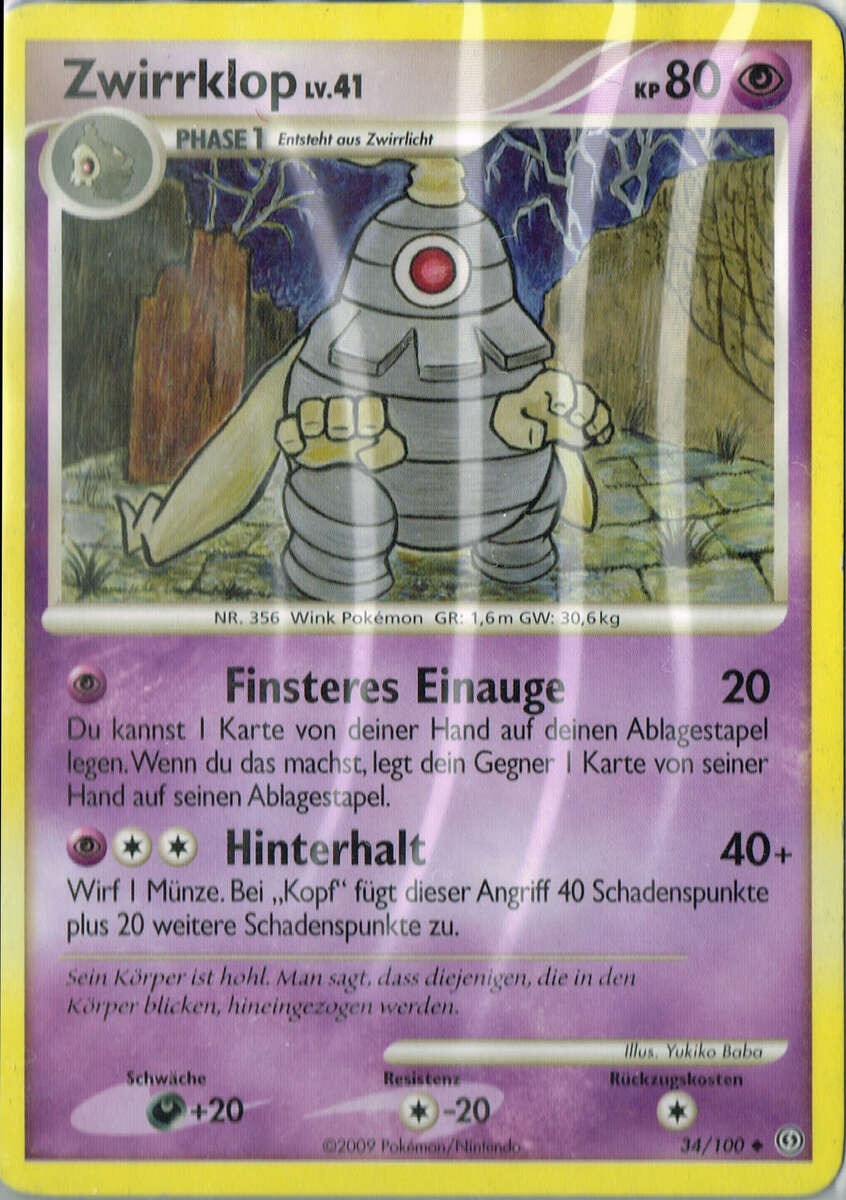 - S ZWIRRKLOP absorbiert alles, egal, wie groß es auch sein mag. Dieses POKéMON hypnotisiert seinen Gegner, indem es auf makabre Weise winkt und sein einziges Auge zeigt. Der hypnotisierte Gegner führt dann seine Befehle aus.
