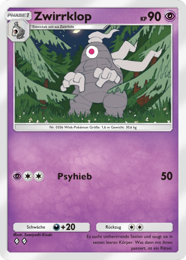 - AS Zwirrklop absorbiert alles, egal, wie groß es auch sein mag. Dieses Pokémon hypnotisiert seinen Gegner, indem es auf makabre Weise winkt und sein einziges Auge zeigt. Der hypnotisierte Gegner führt dann seine Befehle aus.