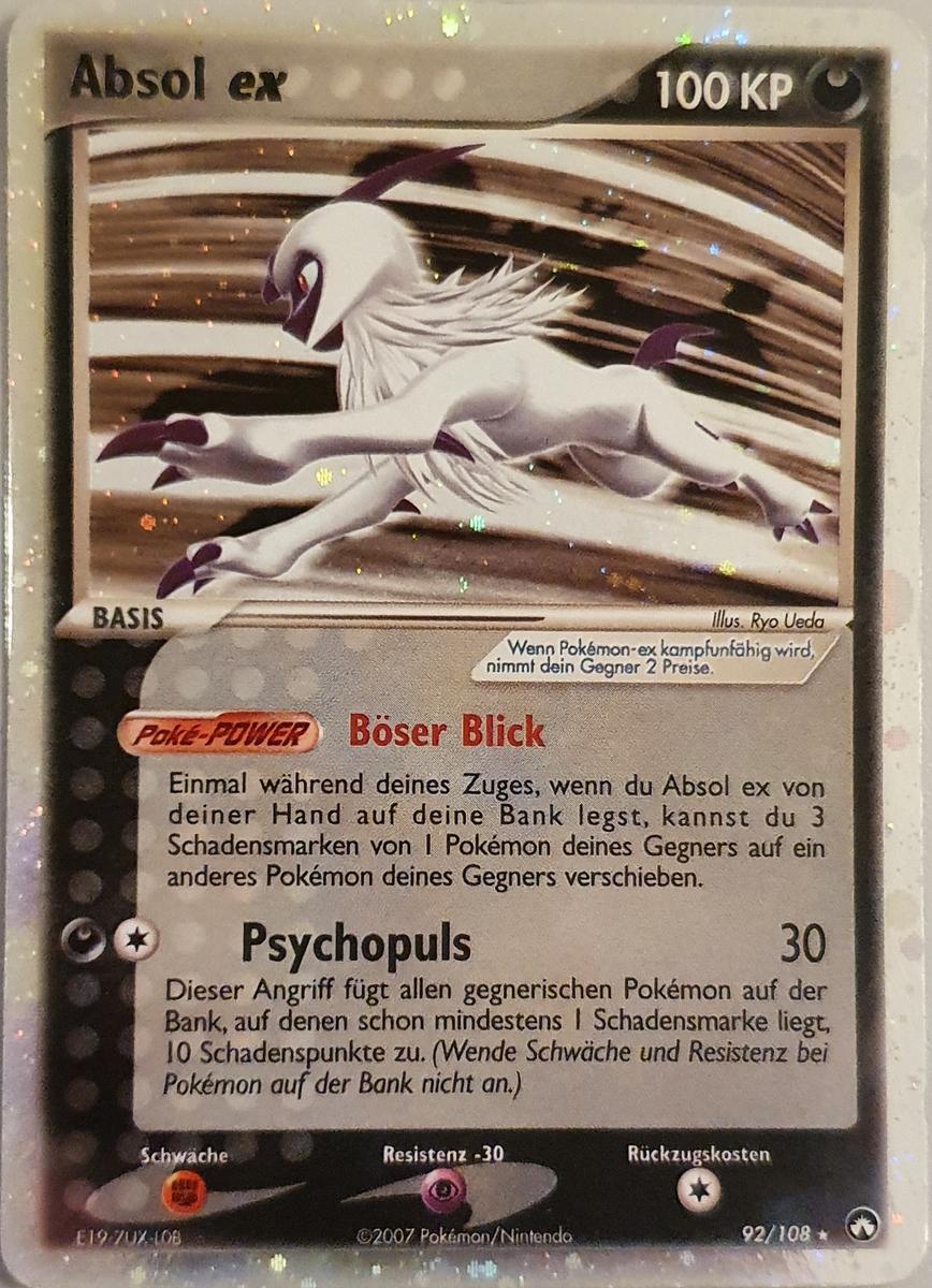 - R Jedes Mal, wenn ABSOL sich den Menschen zeigt, endet dies in einer Katastrophe wie Erdbeben oder Sturmflut. Deswegen ist es auch als das Katastrophen-POKéMON bekannt.