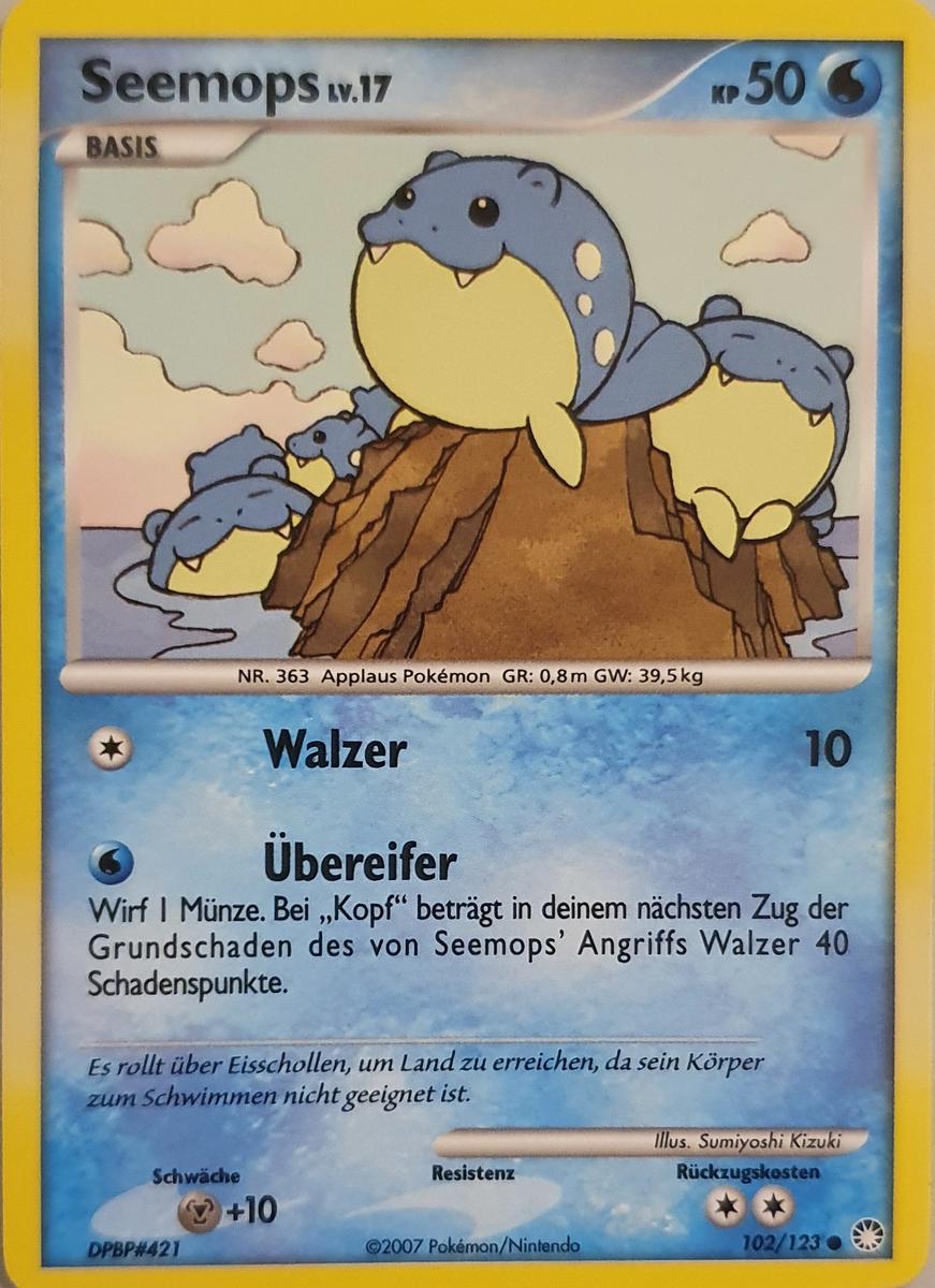 - S SEEMOPS bewegt sich fort, indem es seinen ballartigen Körper herumrollt. Wenn Eisschollen auftauchen, kann man dieses POKéMON dabei beobachten, wie es über das Eis rollt und das Meer überquert
