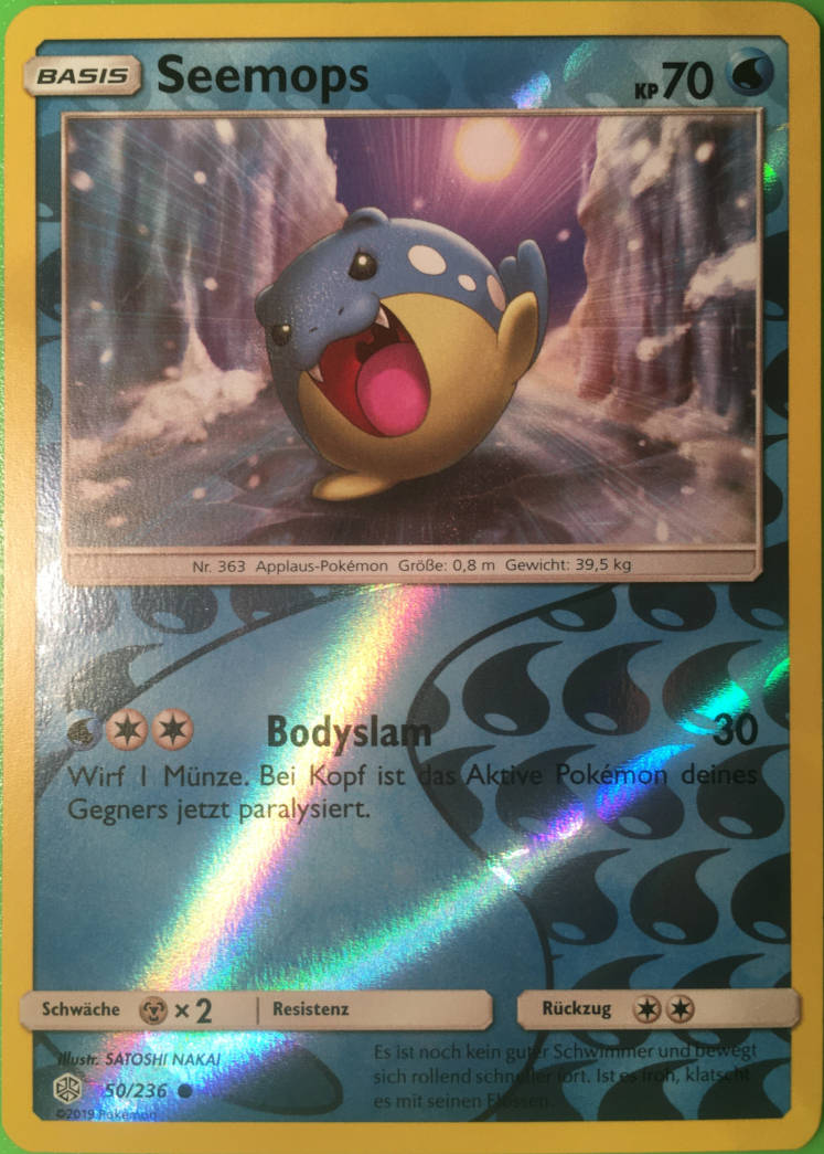 - R SEEMOPS kann schneller rollen als laufen. Wenn Gruppen dieses POKéMON zusammen essen, klatschen sie gleichzeitig, um ihre Freude zu zeigen. Deswegen sind ihre Mahlzeiten sehr laut.
