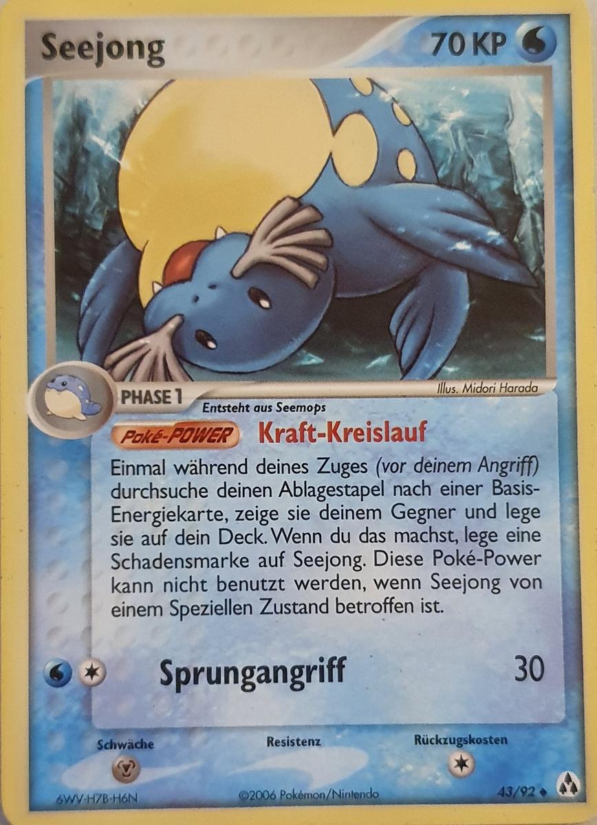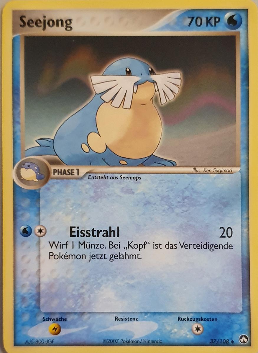 - GO Seejong hat die Angewohnheit, alles, was es zum ersten Mal sieht, auf seiner Nasenspitze zu jonglieren. Dieses Pokémon hält sich bei Laune, indem es manchmal ein Seemops auf seiner Nase balanciert und hin- und herrollt.