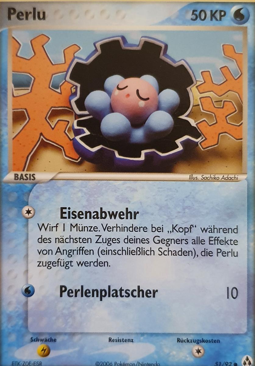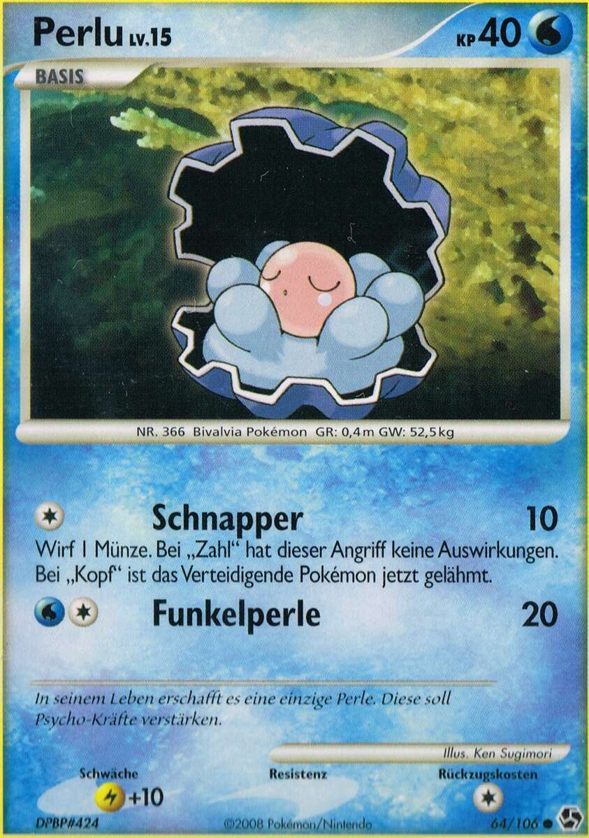- S PERLU wächst, während es von seiner steinharten Schale geschützt wird. Wenn sein Körper zu groß für seine Schale wird, ist dies ein sicheres Anzeichen dafür, dass dieses POKéMON kurz vor seiner Entwicklung steht.