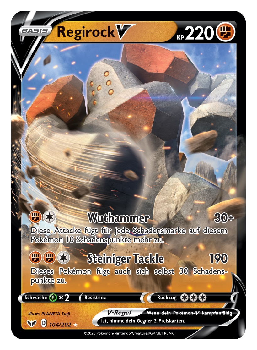 - OR Regirock wurde vor langer Zeit von Menschen weggeschlossen. Wenn der Körper dieses Pokémon im Kampf Schaden nimmt, sucht es nach passenden Steinen, um sich selbst zu reparieren.