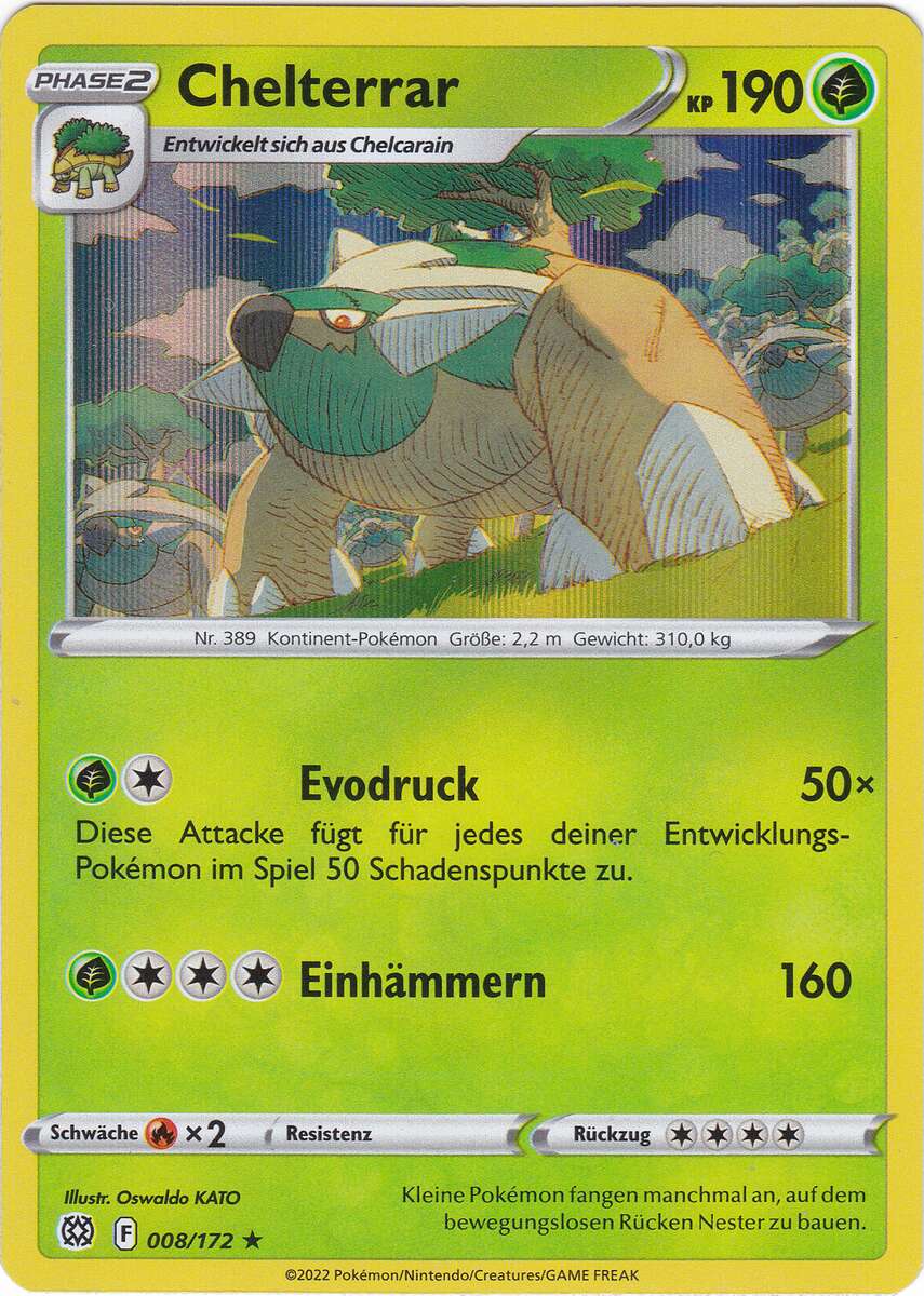 Chelterrar besitzt die Pokédex-Nummer #389 und ist ein Pflanze / Boden-Pokémon der vierten Generation. Seinen ersten Auftritt in Videospielen hat es in Pokémon Diamant & Perl.