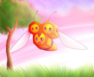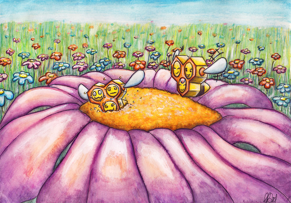 - D Ein PKMN, geformt aus 3 einzelnen PKMN. Fleißig bringt es Blütenhonig zu HONWEISEL.