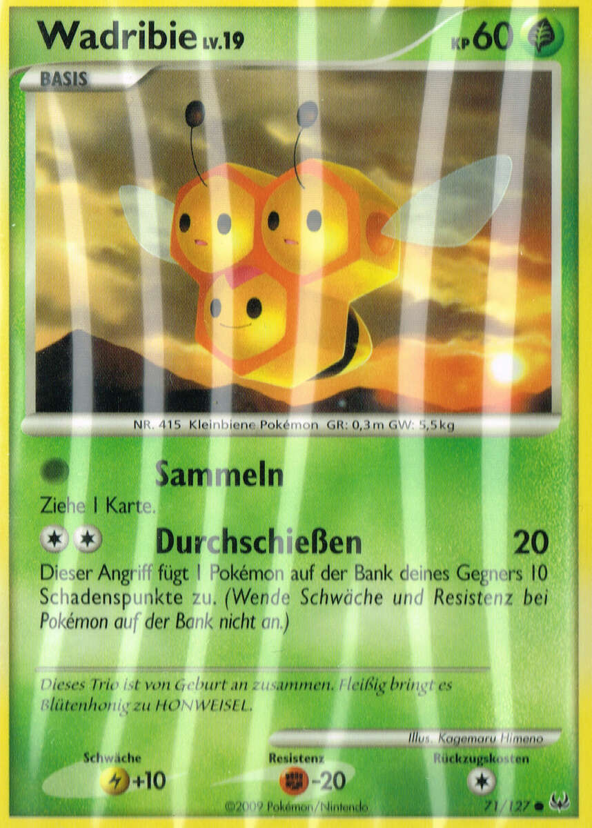 - PLA Es schwört dem Pokémon, das als seine Königin fungiert, ewige Treue und sammelt stets emsig Nektar. Je nach Kolonie unterscheidet sich der Honig im Geschmack.