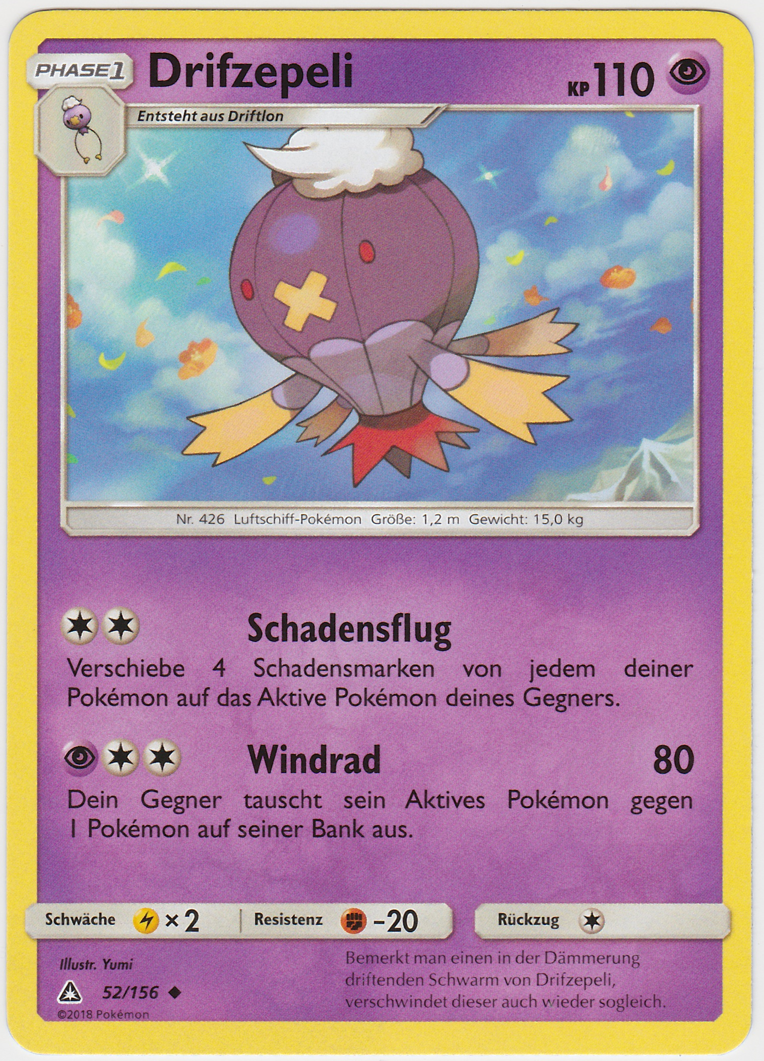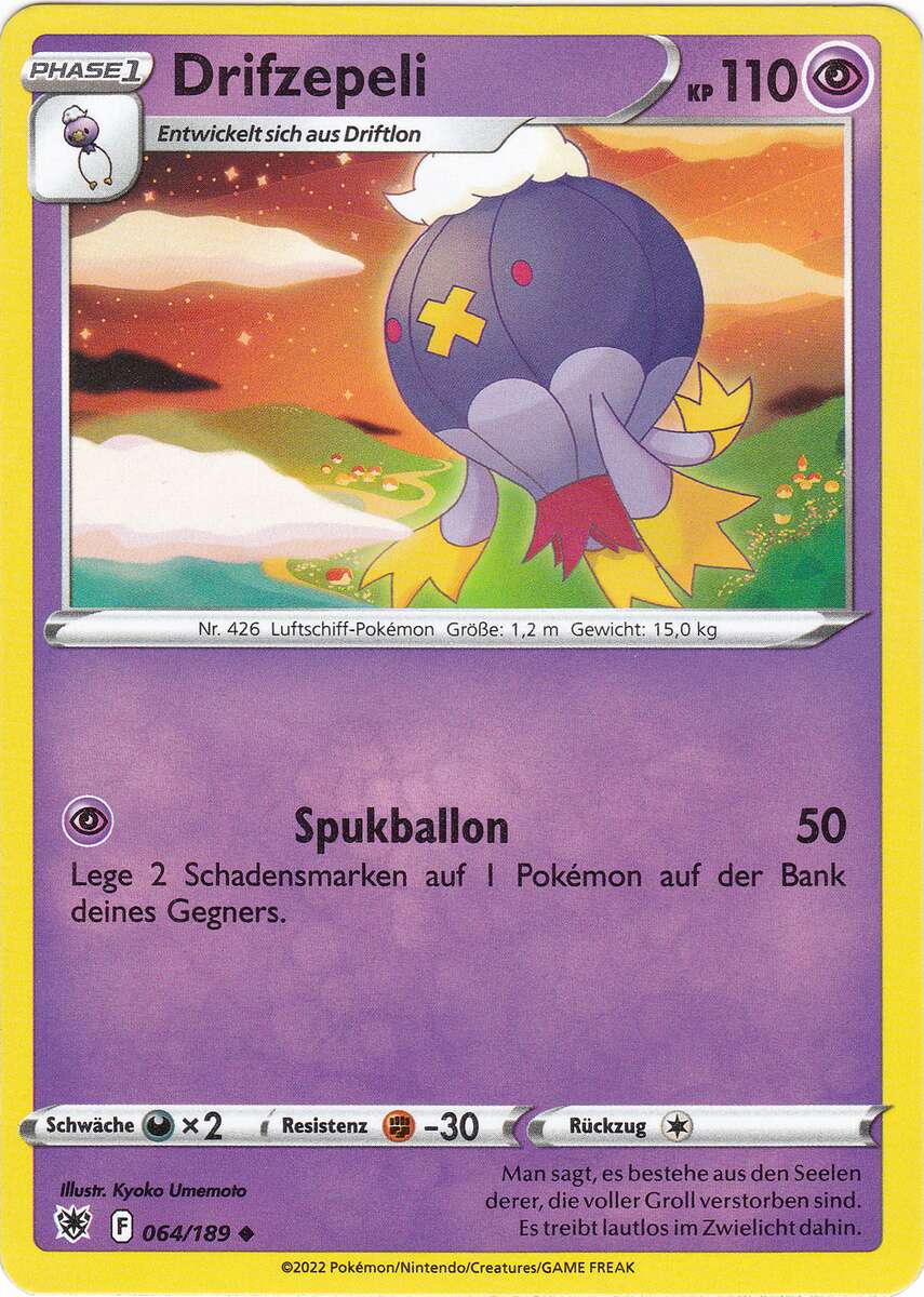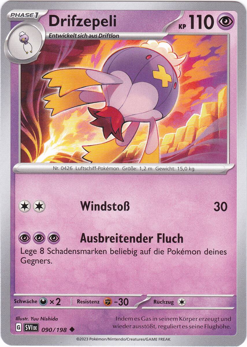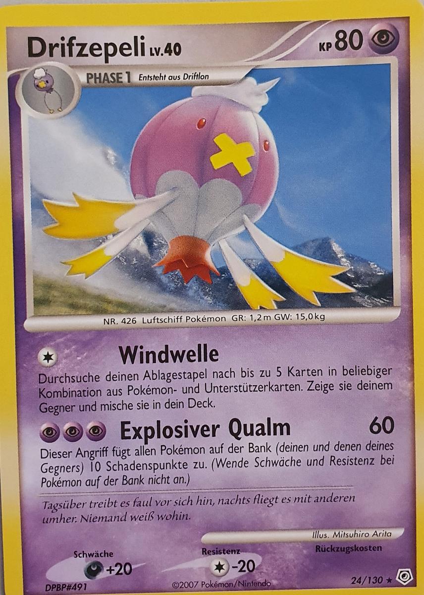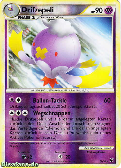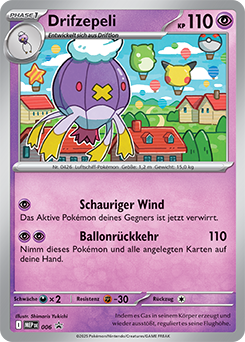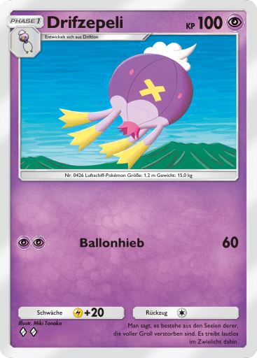 Nach Aktivieren von Psychosamen durch Kapu-Falas Psychofeld wird Drifzepeli schneller als die gängigen Verhöhnerpokémon und kann somit ungehemmt seinen Rückenwind blasen. Irrlicht schwächt physische Angreifer und mit Spukball kann es auf fast alle Gegner zumindest passablen Schaden machen, für gegnerische Kapu Fala reicht der Spukball für einen 2HKO. Der letzte Slot ist sehr flexibel. Regentanz ist stark gegen Qurtel-Teams, Sonnentag legt das als Double Duck bekannte Duo aus Pelipper und Entoron lahm. Dunkelnebel macht jegliches Setup wie von Gedankengut-Kapu-Kime oder Macht der Neun-Evoli zunichte. Abgangsbund tauscht ein passives Eröffnungspokémon gegen einen gegnerischen potentiell gefährlichen Angreifer.