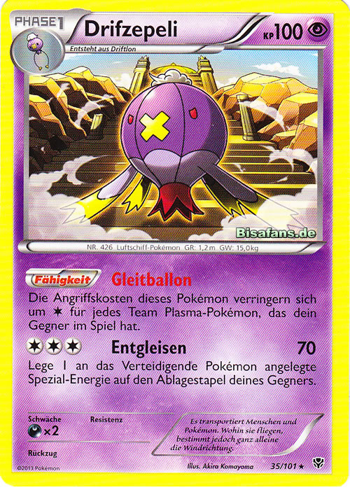 - P Es trägt Menschen und PKMN im Flug. Aber da es sich vom Wind nur tragen lässt, weiß man nie, wo es hingeht.