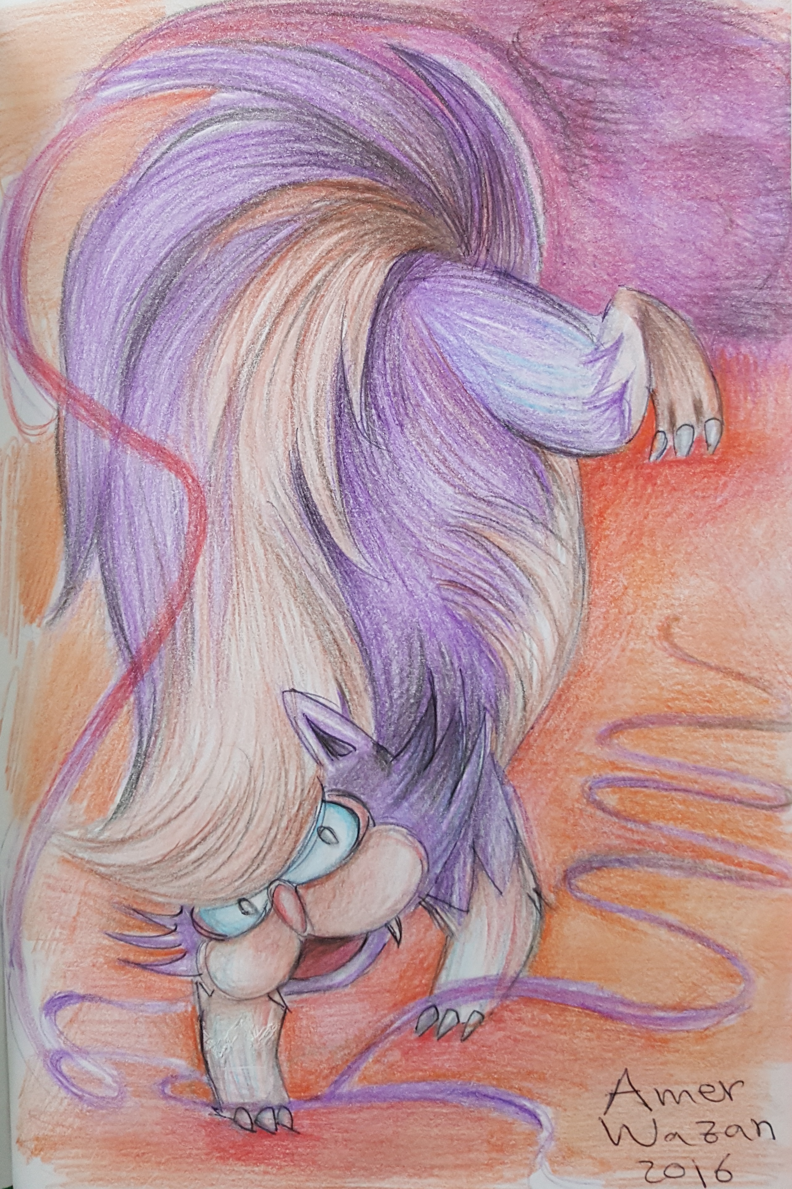 - P Es greift an, indem es eine stinkende Flüssigkeit aus der Spitze seines Schweifs versprüht. Feuert es sie wiederholt ab, lässt der Geruch nach.