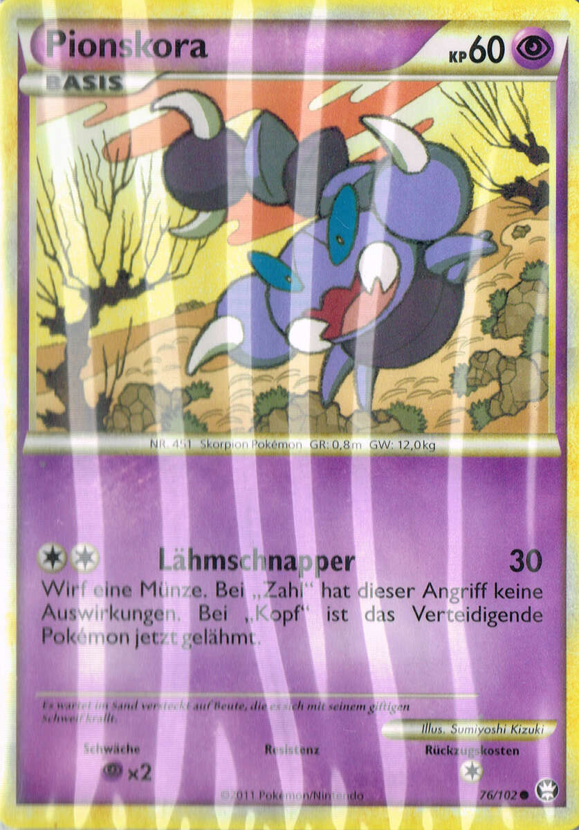 - HGSS Es wartet im Sand versteckt auf Beute, die es sich mit seinem giftigen Schweif krallt.