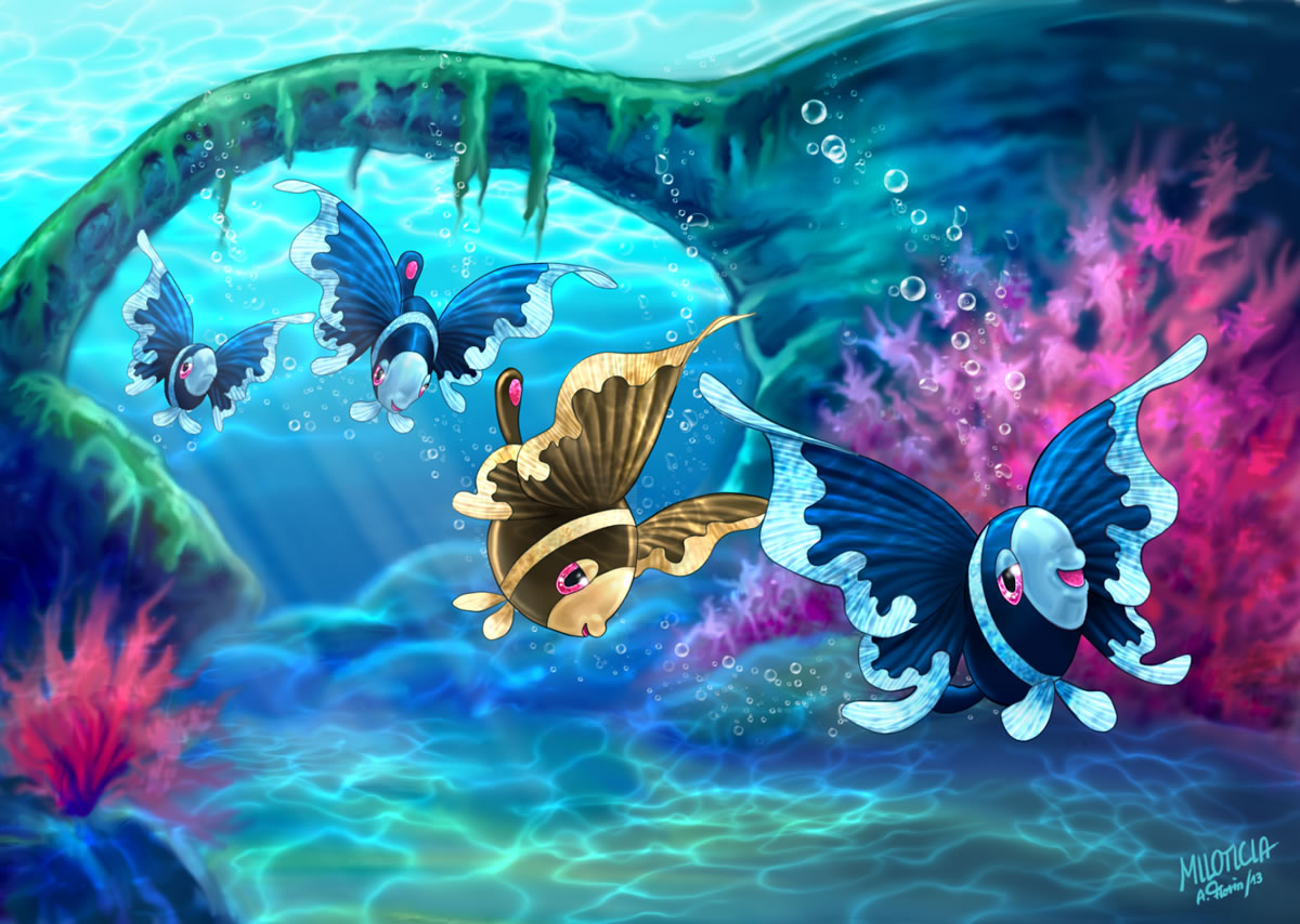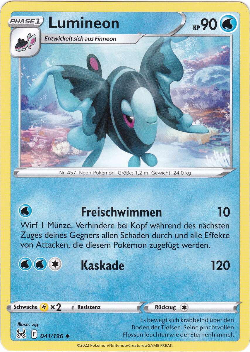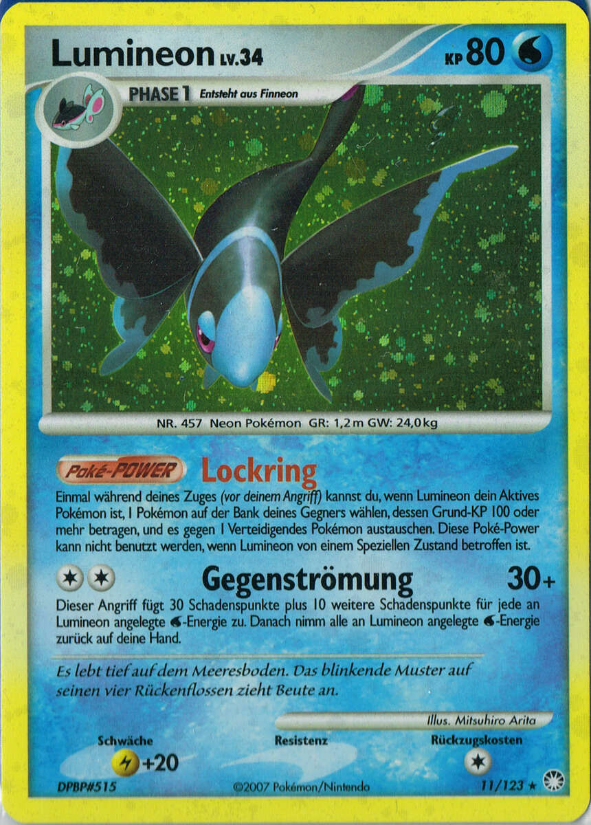 - PLA Mit ihren leuchtenden Flossen jagen sie Beute. Wenn Lumineon nachts einen Schwarm bilden, funkelt die Wasseroberfläche wie ein Sternenhimmel.